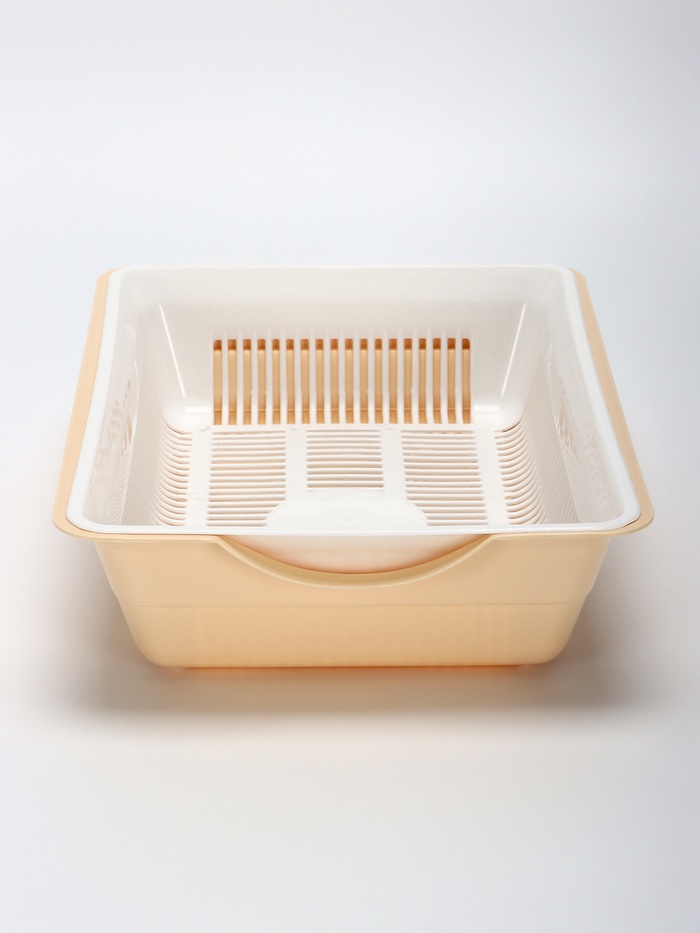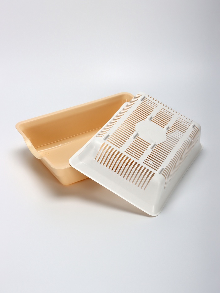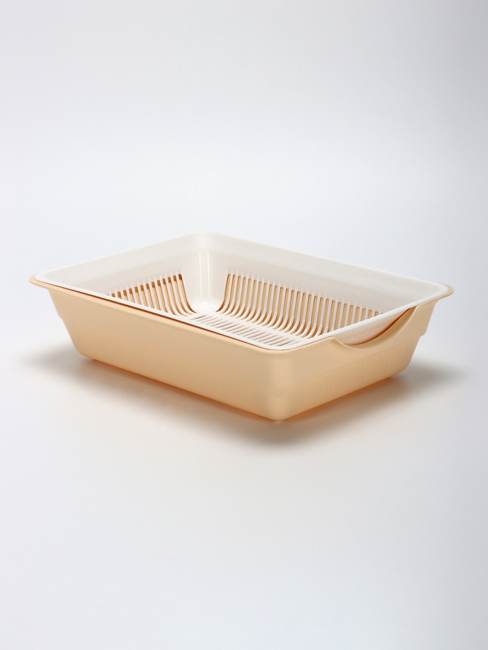 Туалет для кошек, 36×25×9 см, глубокий, с сеткой, пластик, белый, бежевый 7 фото