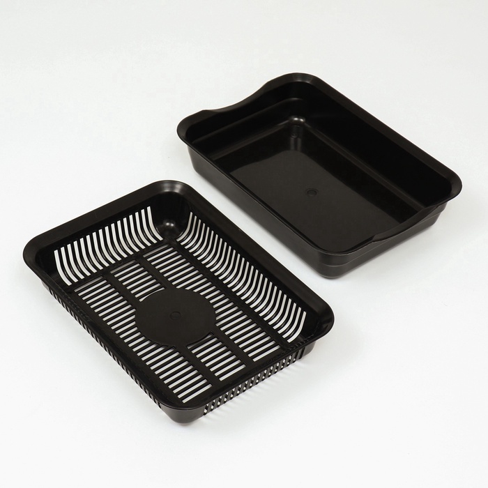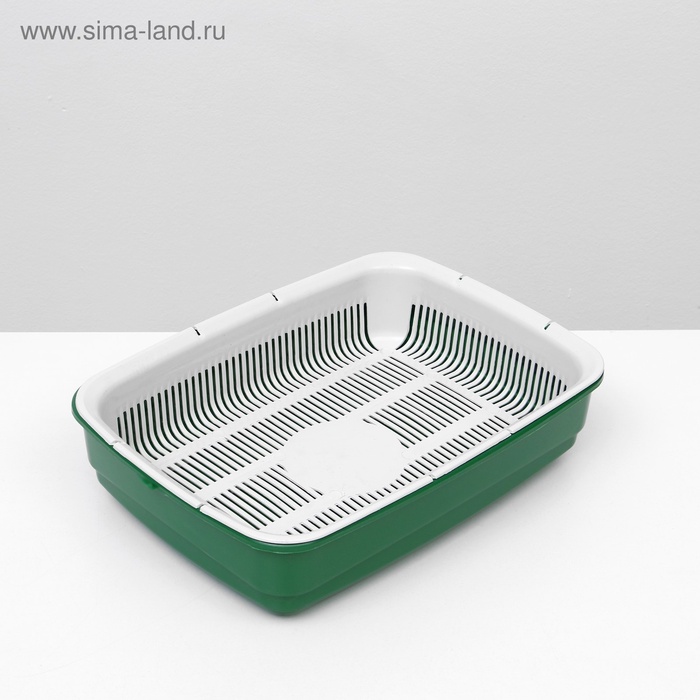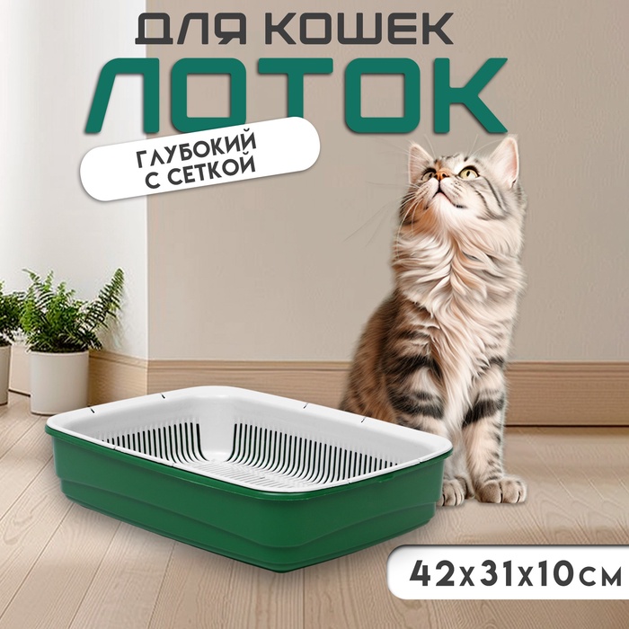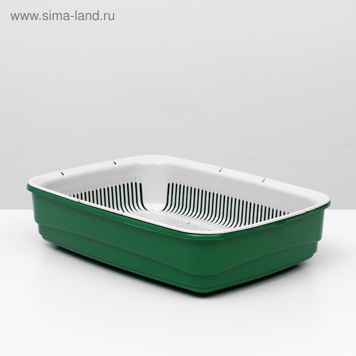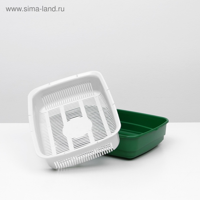 Лоток для кошек, 34.5×25.5×7.5 см, с сеткой, пластик, серый, оливковый 7 фото
