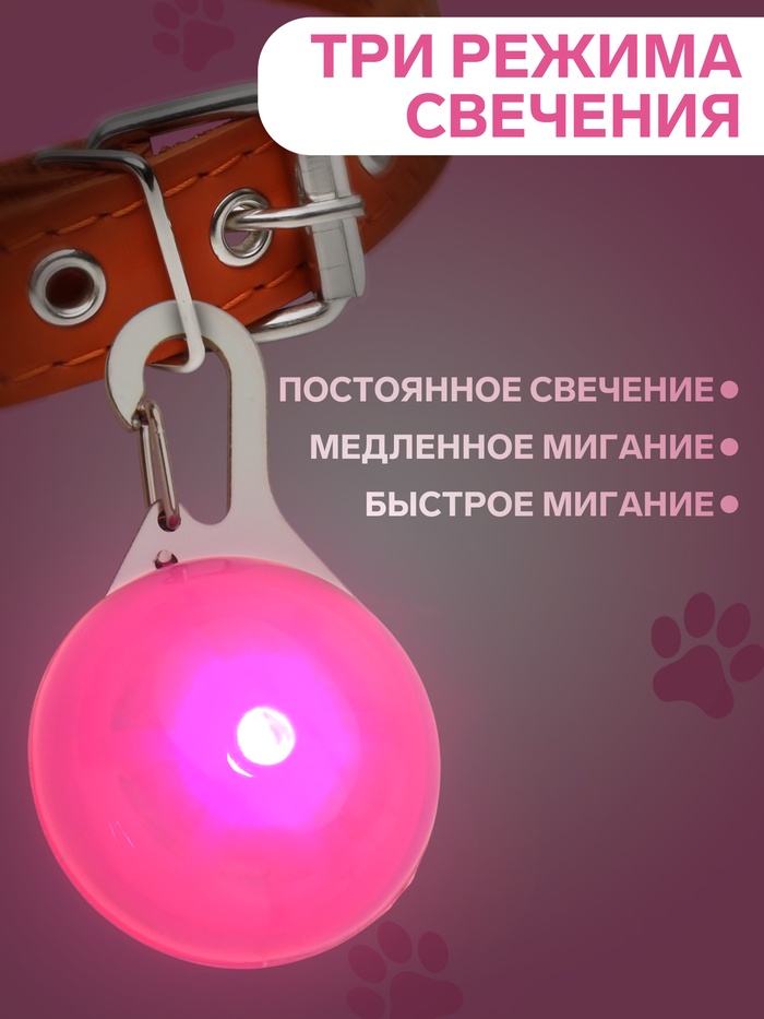 Световой маячок «Сфера», 3 режима свечения, пластик, металл, розовый 10 фото