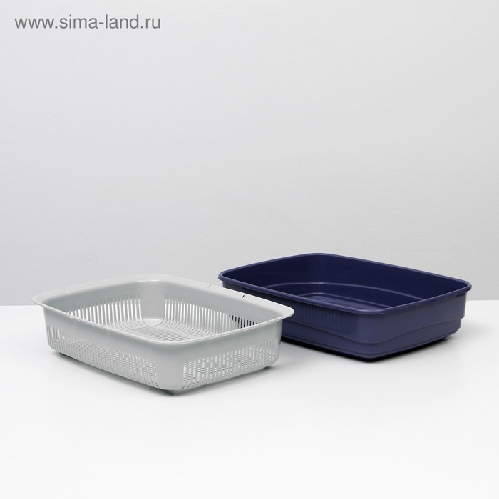 Лоток большой с сеткой Atlantis «Стандарт», 42×31×10 см, синий 7 фото