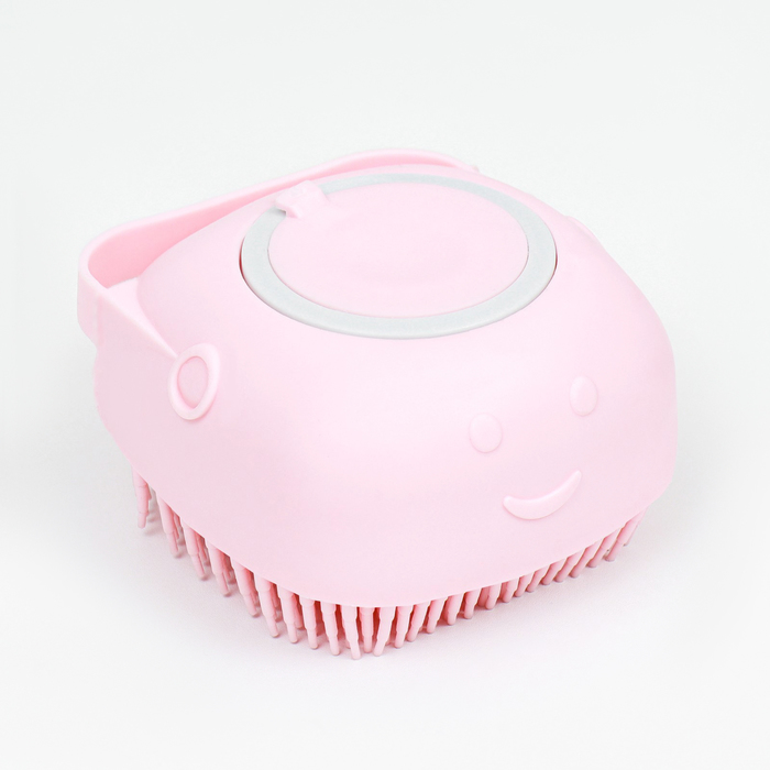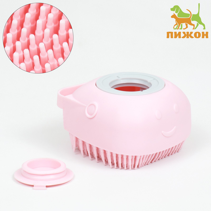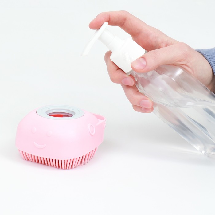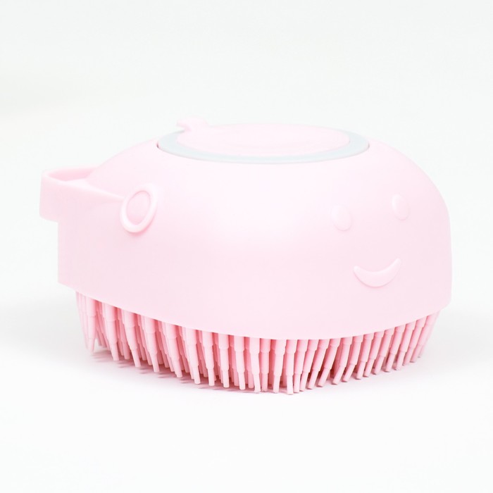 Щётка для мытья и массажа животных, с ёмкостью для шампуня, пластик, розовая 6 фото