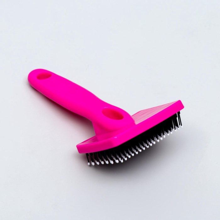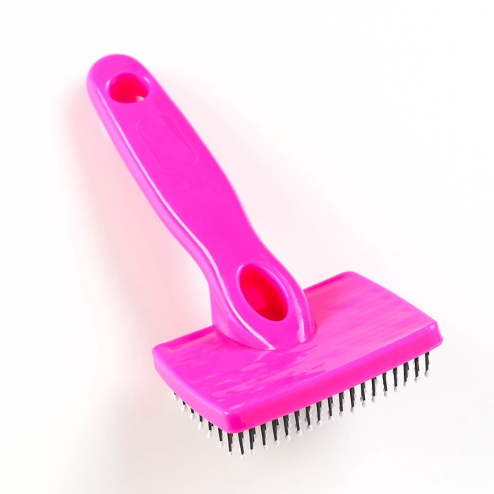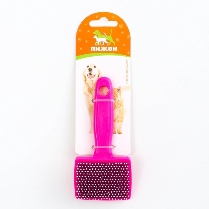 Пуходёрка малая, 6×13.5 см, мягкая, с закруглёнными зубьями, пластик, розовая 8 фото