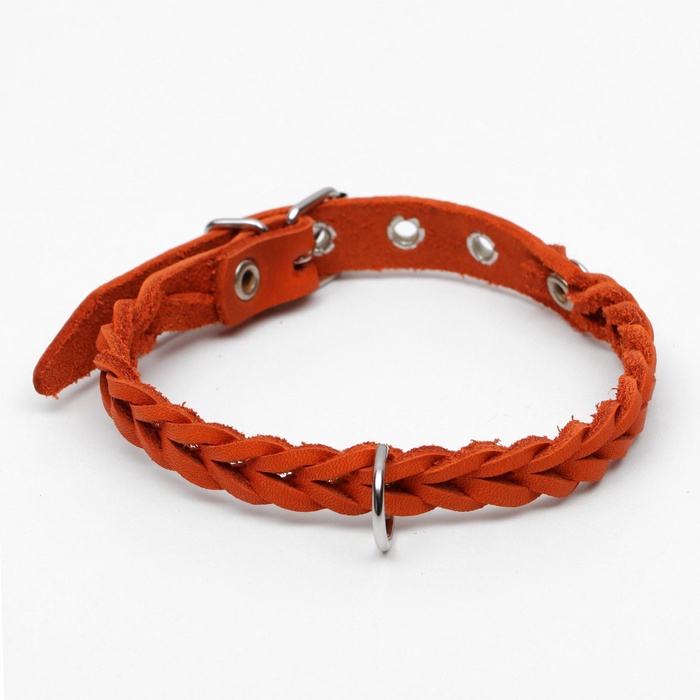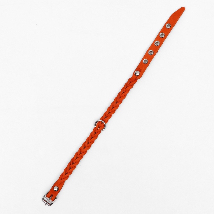 Ошейник, 1.2×36 см, ОШ 20-30 см, плетёный, кожа, оранжевый 5 фото