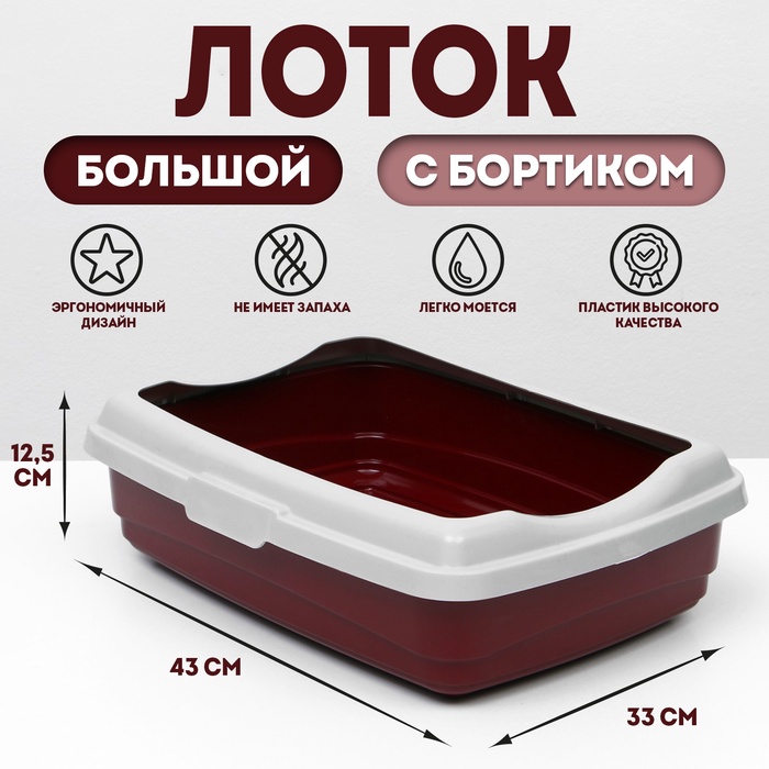 Лоток большой с бортиком Atlantis «Стандарт», 43×33×12.5 см, красный 4 фото