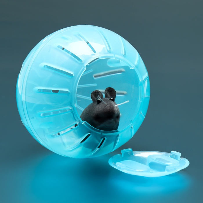 Колесо для грызунов, 11 см, тихое, с металлическим стержнем, пластик, синее 3 фото