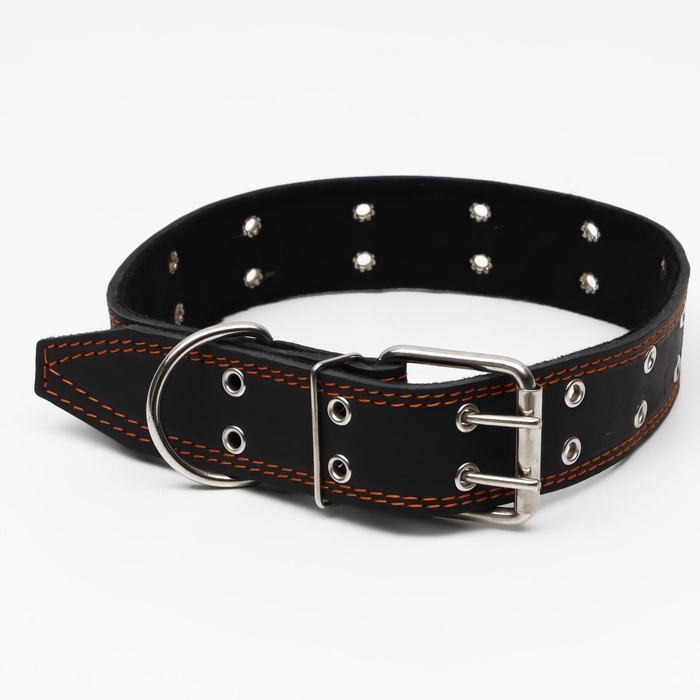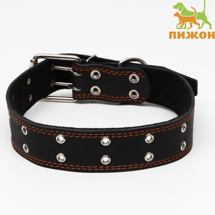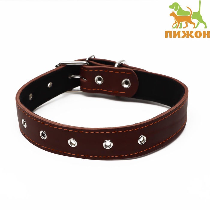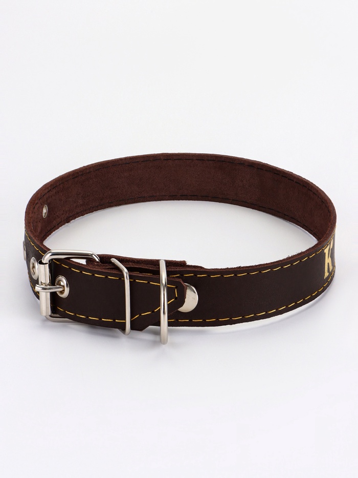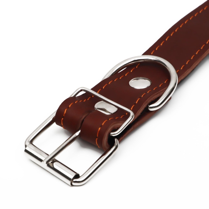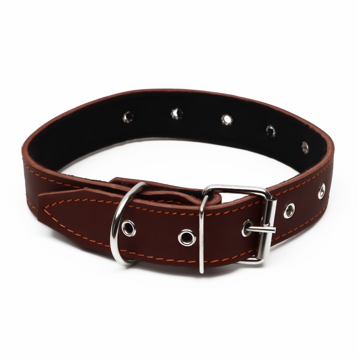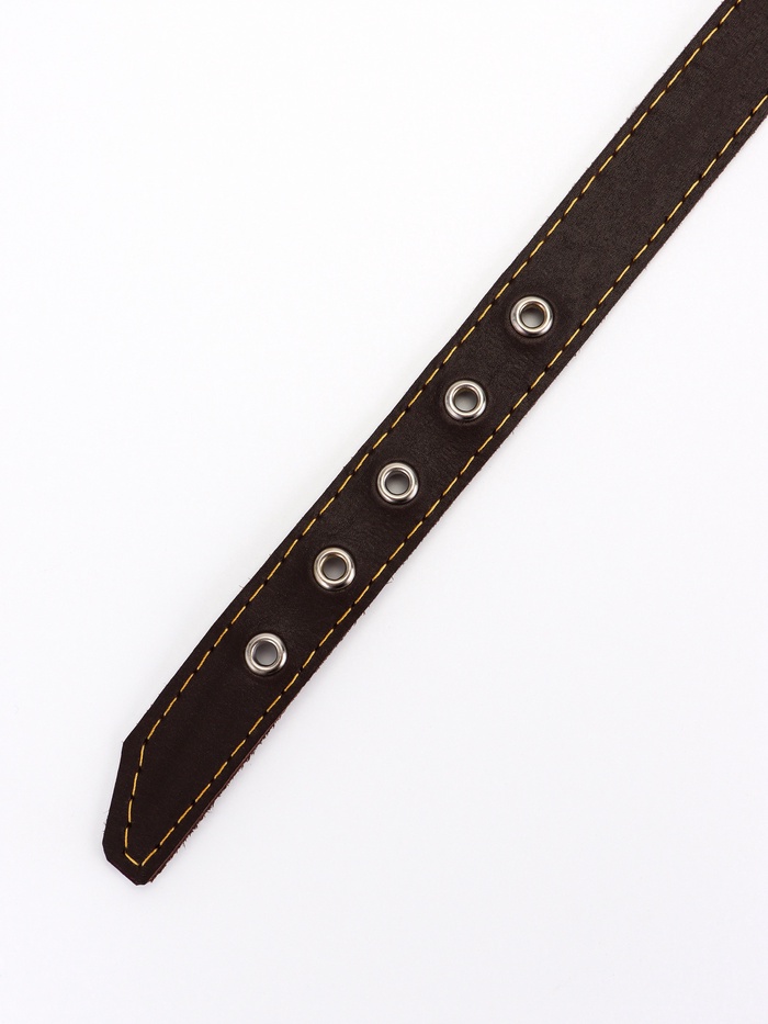 Ошейник кожаный на синтепоне, безразмерный, 71×3.5 см, ОШ 29-62 см, коричневый 5 фото