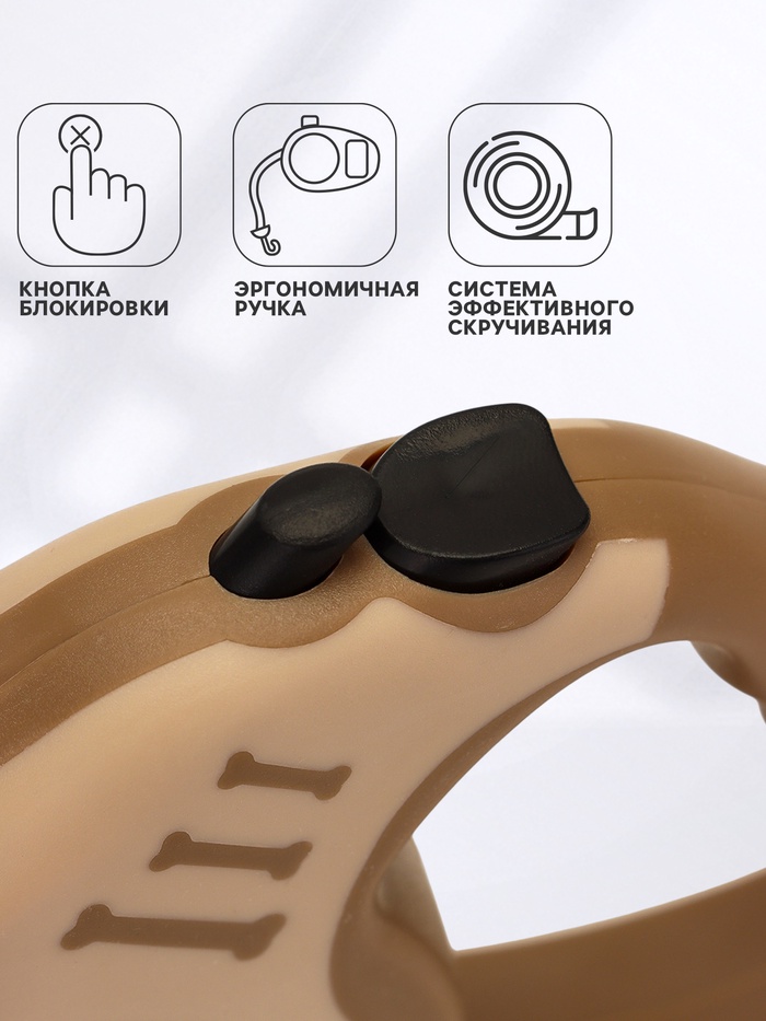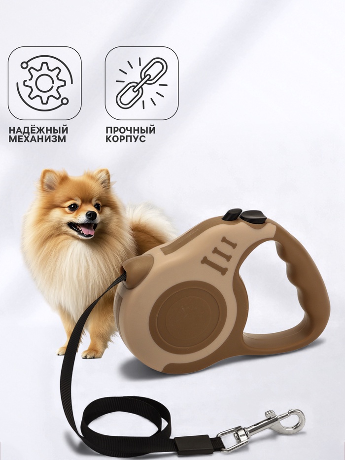 Рулетка для собак «Зарница», 3 м, до 11.5 кг, бежевая, коричневая 10 фото
