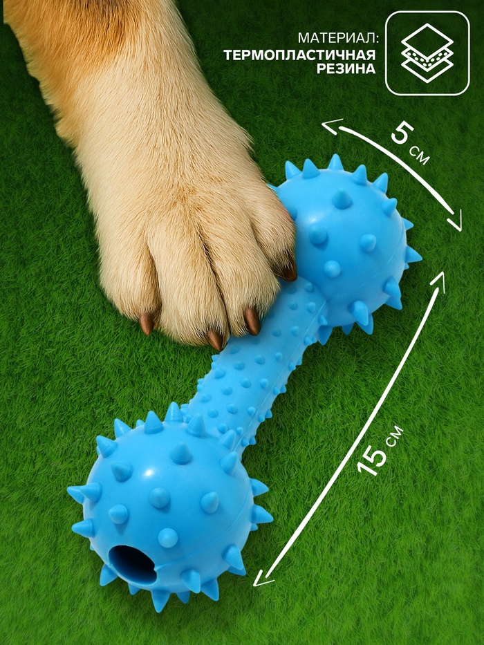 Жевательная игрушка для собак «Грозная гантель», 15×5 см, синяя 6 фото