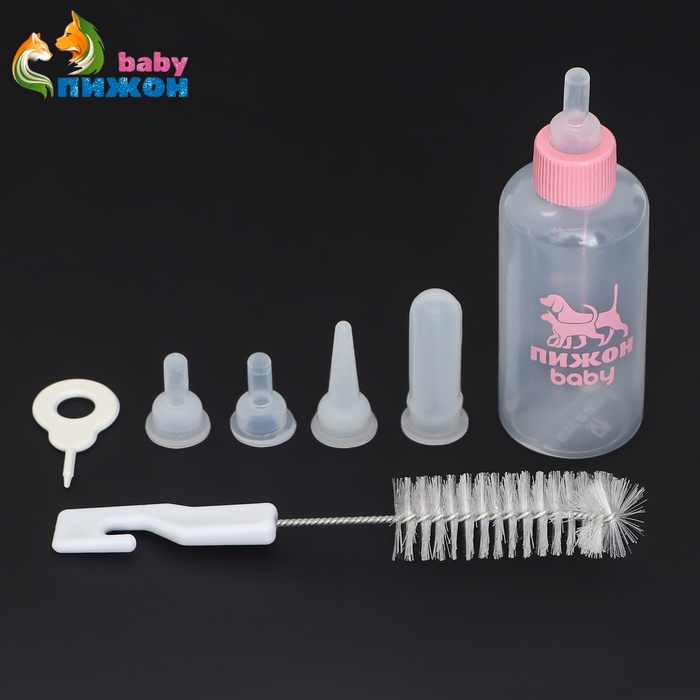 Набор для вскармливания животных «Пижон», бутылочка 60 мл, 4 соски и ёршик, розовый 8 фото