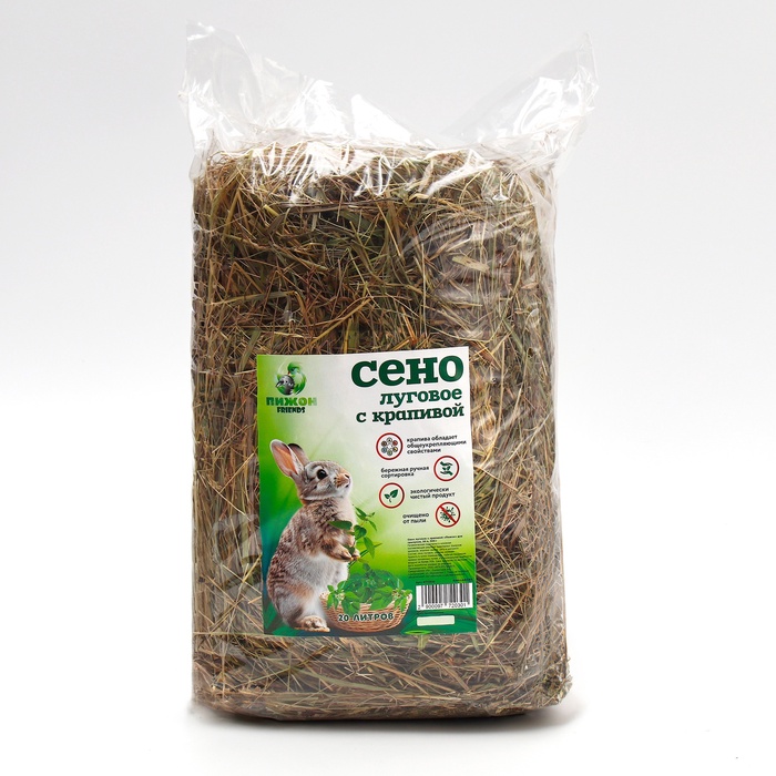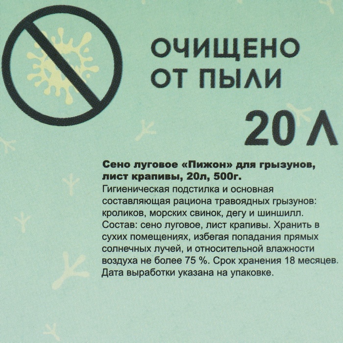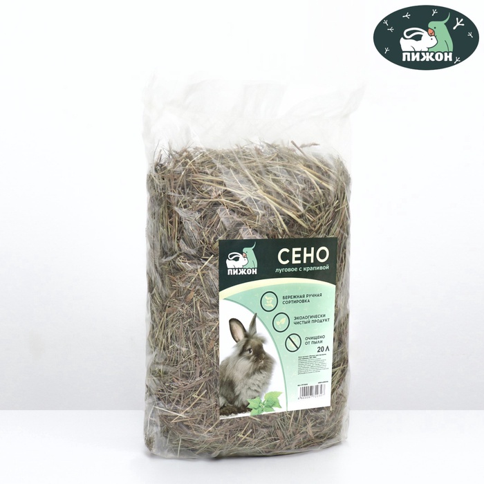 Сено луговое с крапивой резаной «Пижон» для грызунов, 20 л, 500 г 8 фото