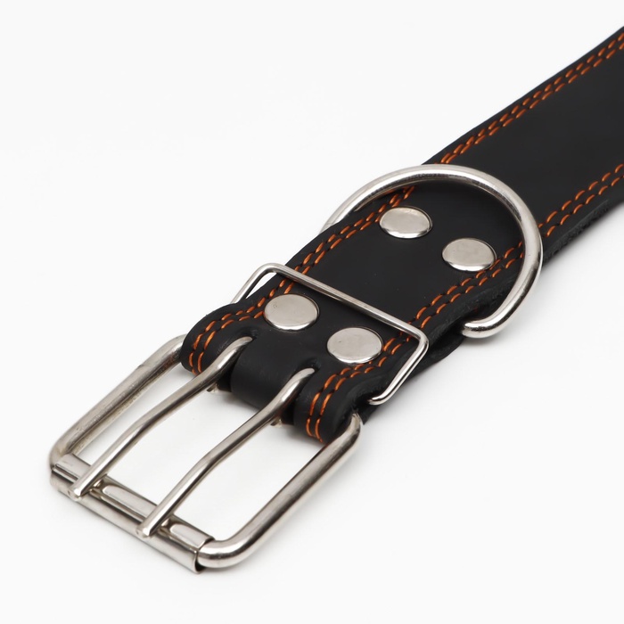 Ошейник безразмерный, 83×4.5 см, ОШ 20-71 см, на синтепоне, кожа, чёрный 6 фото