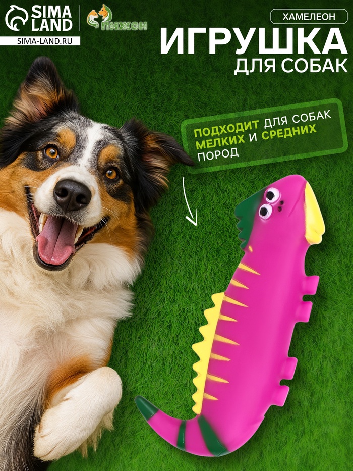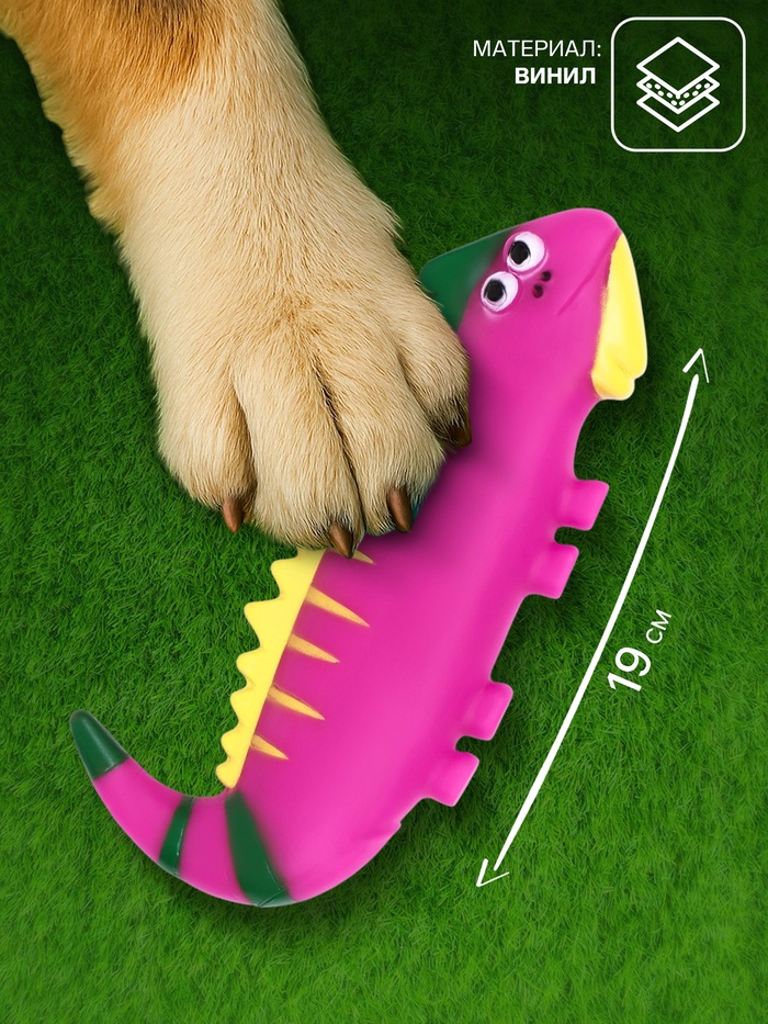 Игрушка для собак «Хамелеон» для собак, 19 см, пищащая, фиолетовая 6 фото