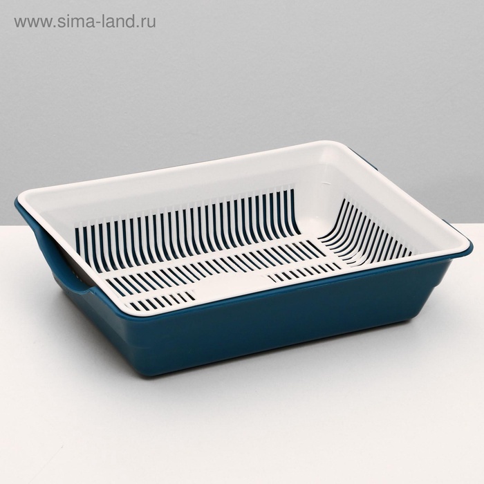 Лоток большой с сеткой и бортиком Atlantis «Стандарт», 43×33×12.5 см, синий 7 фото