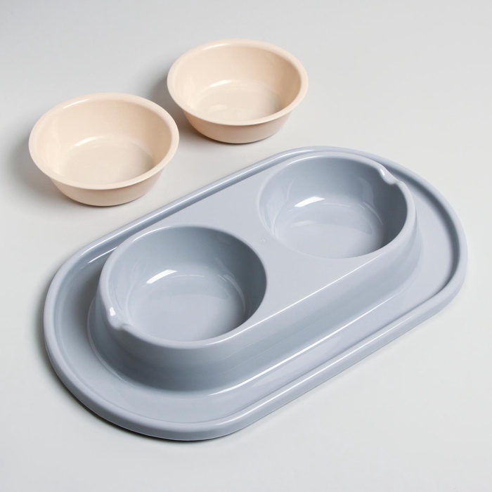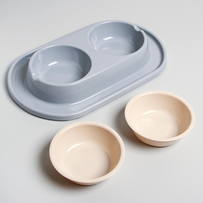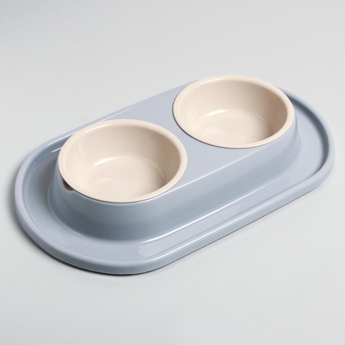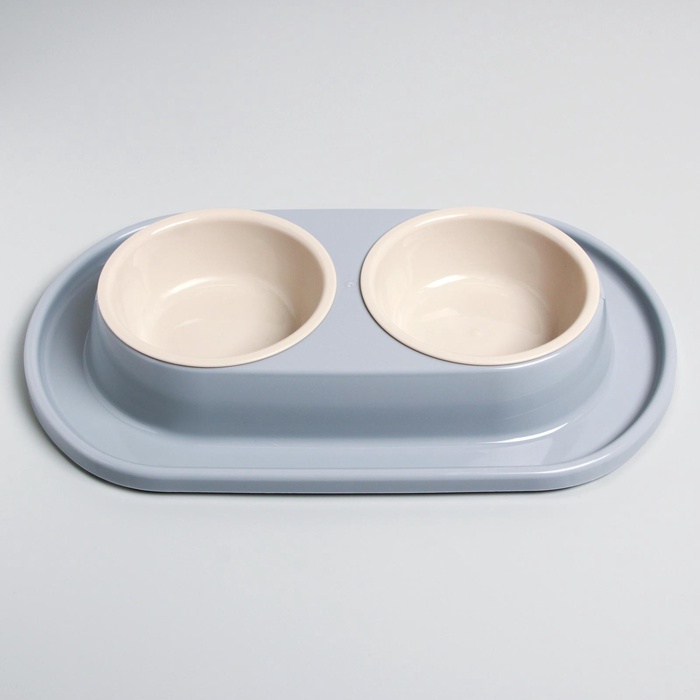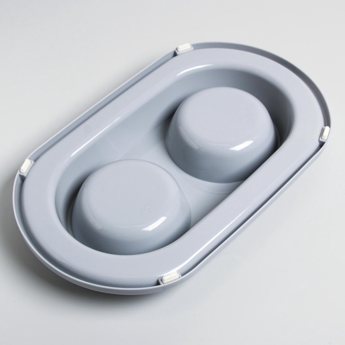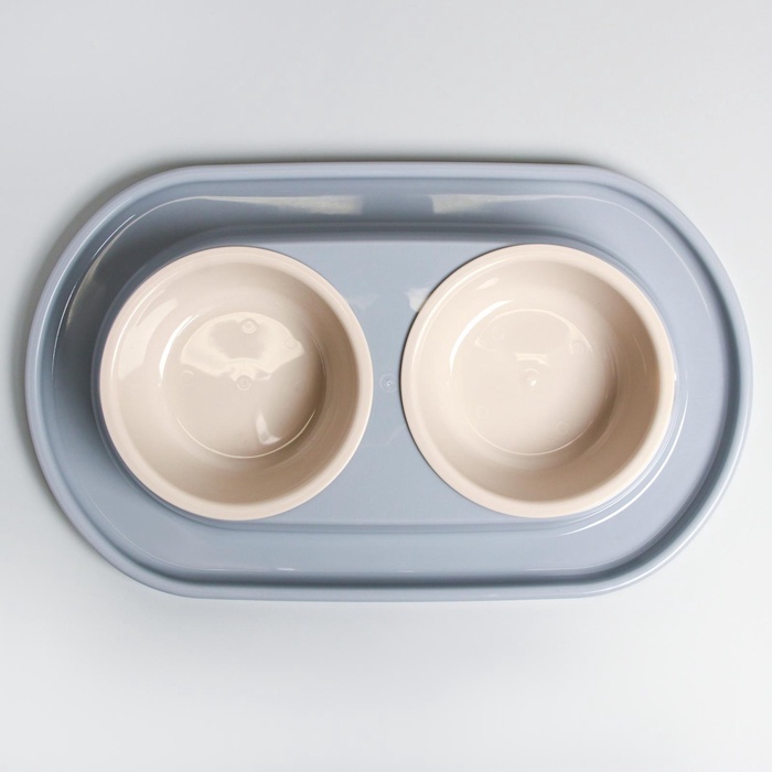 Миска двойная для животных «Мур-мяу», 300 мл, на подставке, пластик, серая 7 фото