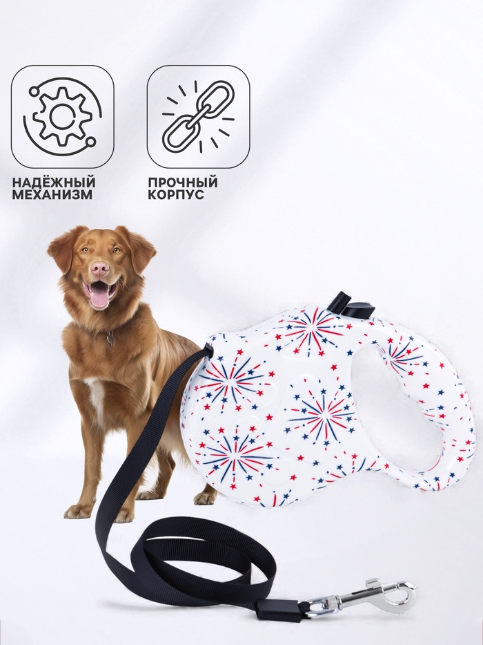 Рулетка «Салют», 5 м, до 35 кг, принт, белая 10 фото