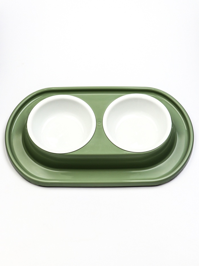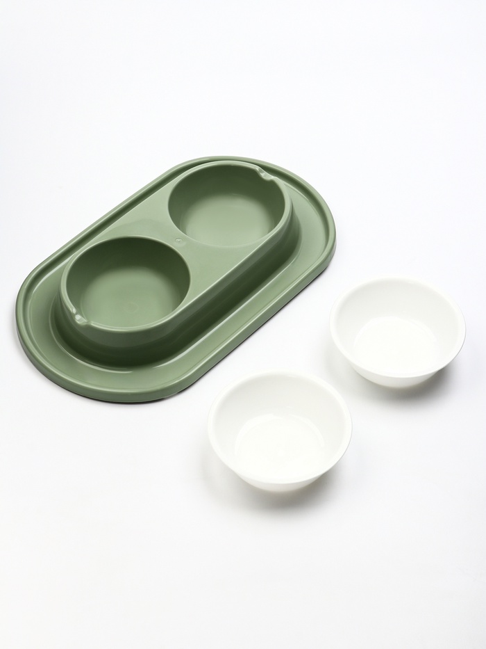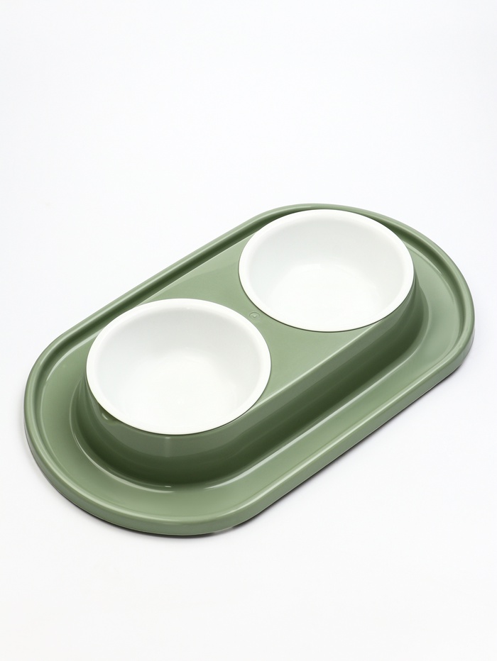 Миска двойная для животных «Мур-мяу», 300 мл, на подставке, пластик, цвет фисташковый 8 фото