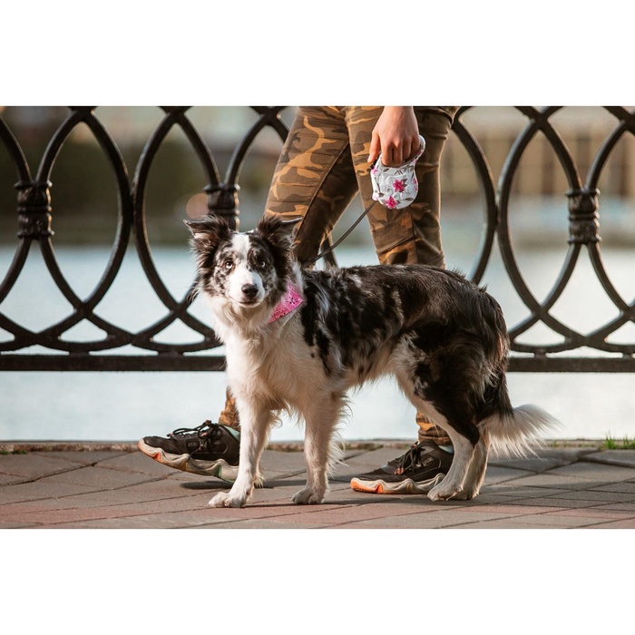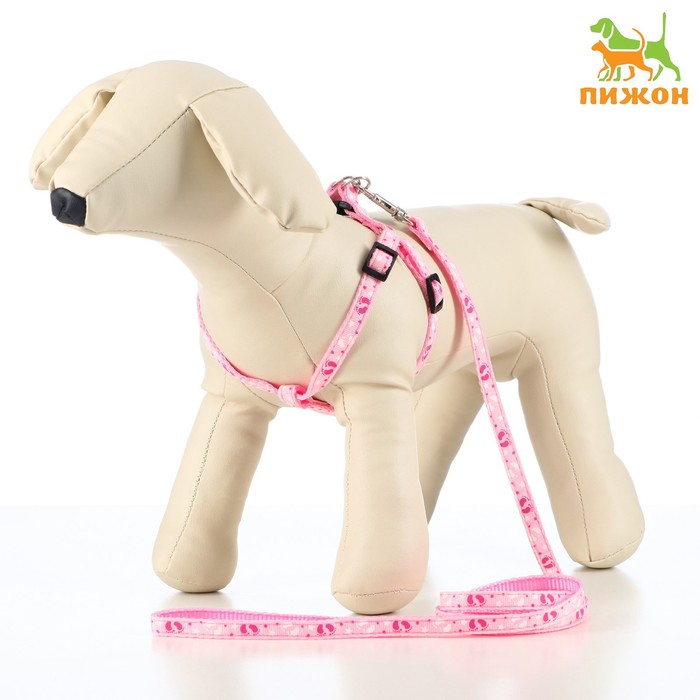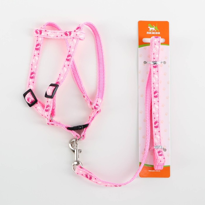Шлейка с поводком «Цветные следы», ОГ 23-35, ширина 1 см, поводок 120 см, розовая 7 фото