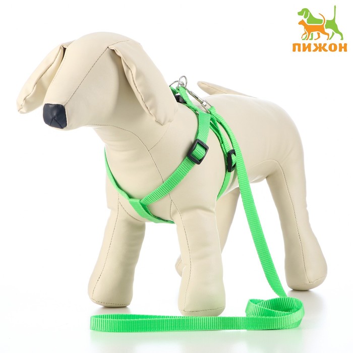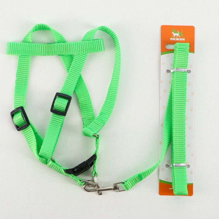 Шлейка с поводком «Базис», 32-46×1.5 см, поводок 120×1.5 см, зелёная 7 фото
