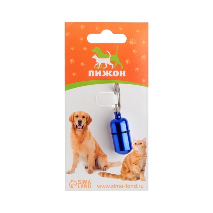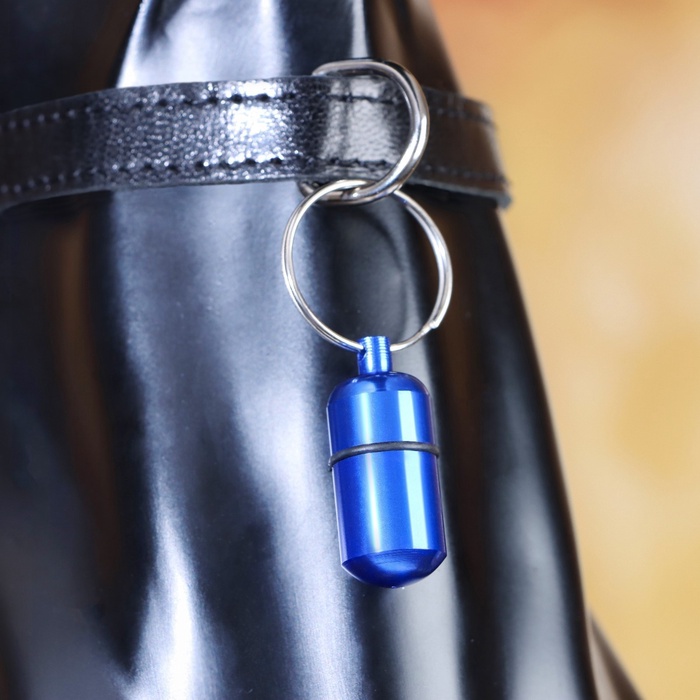 Адресник - капсула под записку, 2.2×1.3 см, металл, синий 7 фото