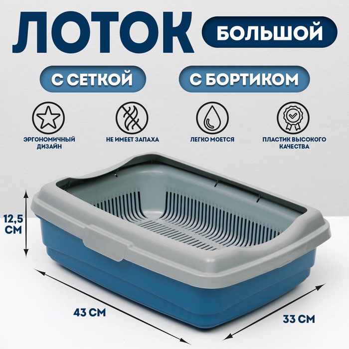 Туалет для кошек, 36×25×9 см, глубокий, с сеткой, пластик, цвет МИКС 6 фото