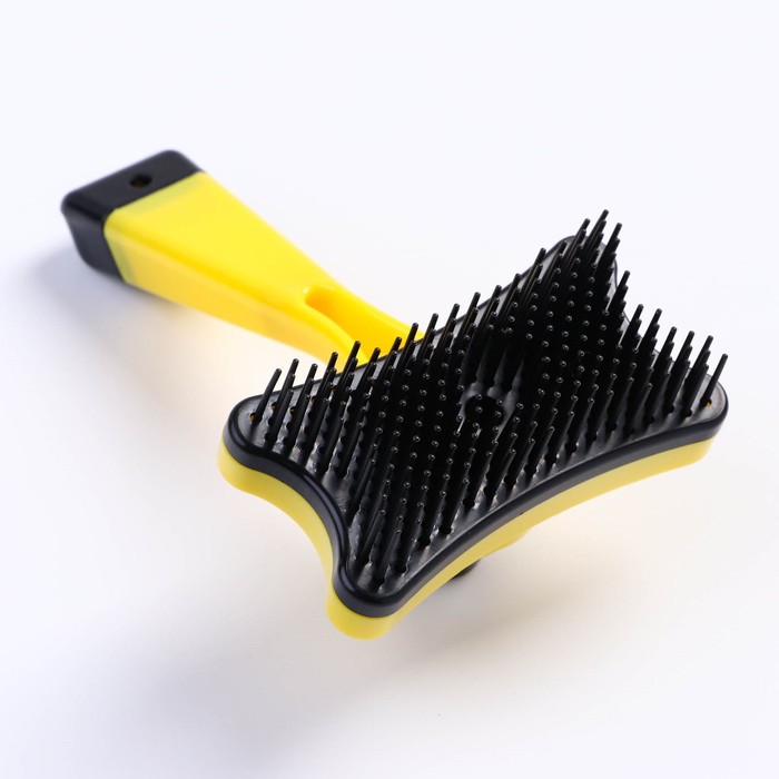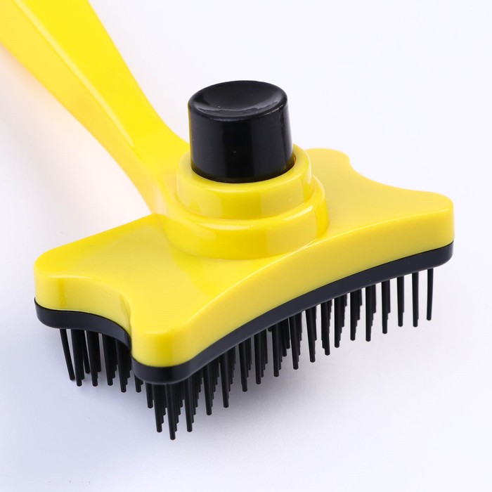 Пуходёрка «Косточка», 8.5×12.5 см, с самоочисткой, пластик, жёлтая 5 фото