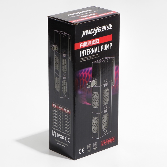 Фильтр внутренний JINGYE JY-9100F High-end, бесшумный, двухсекционный, 700 л/ч, 10 Вт 10 фото