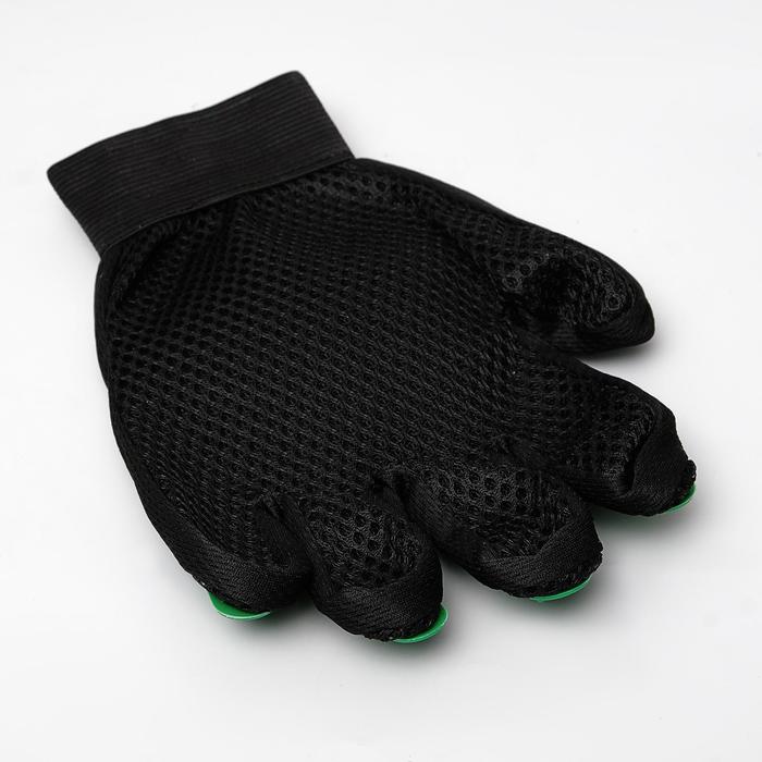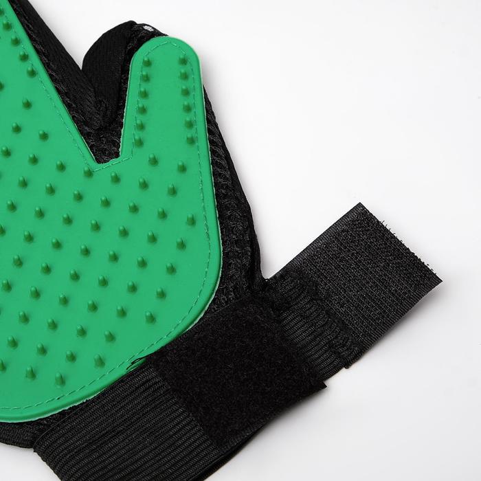 Перчатка - щетка для шерсти на правую руку с удлиненными зубчиками, зелёная 4 фото