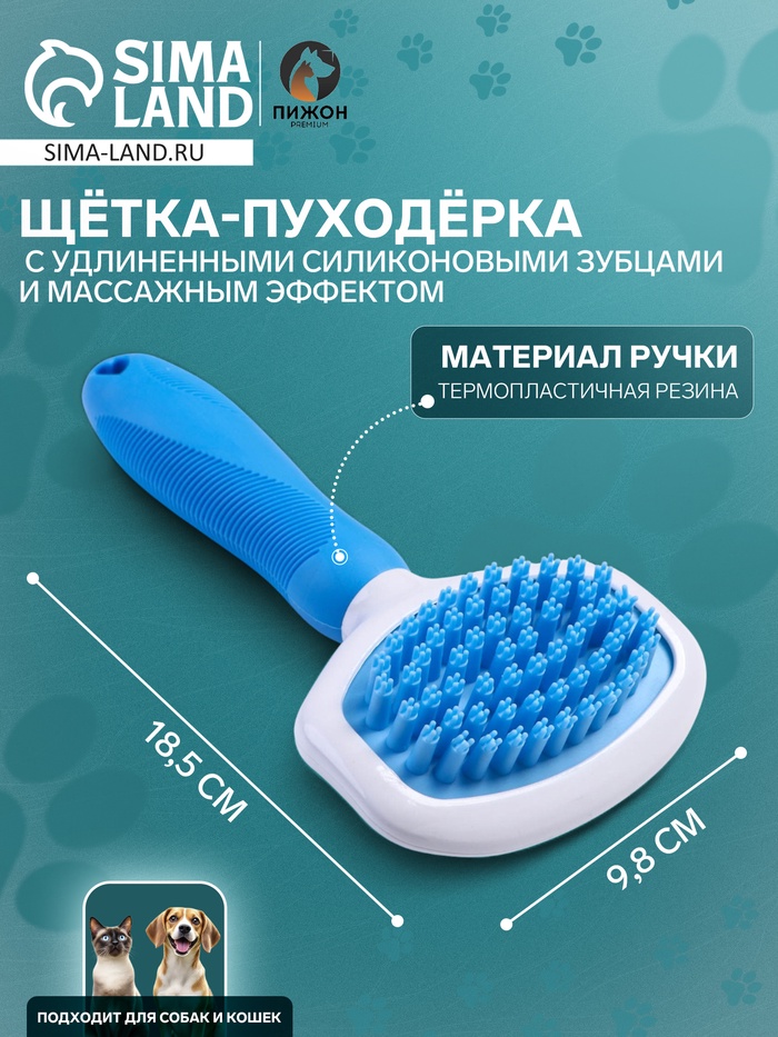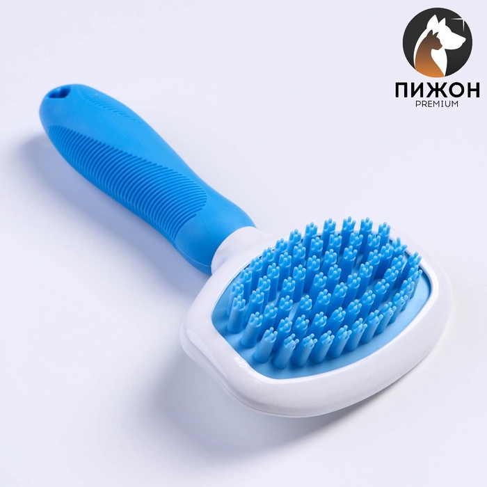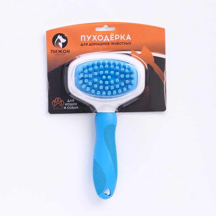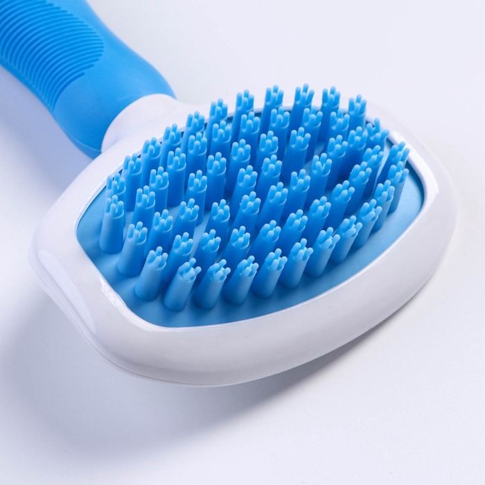 Пуходёрка, 9.8×18.5, с удлинёнными силиконовыми зубцами и массажным эффектом, пластик, голубая 6 фото