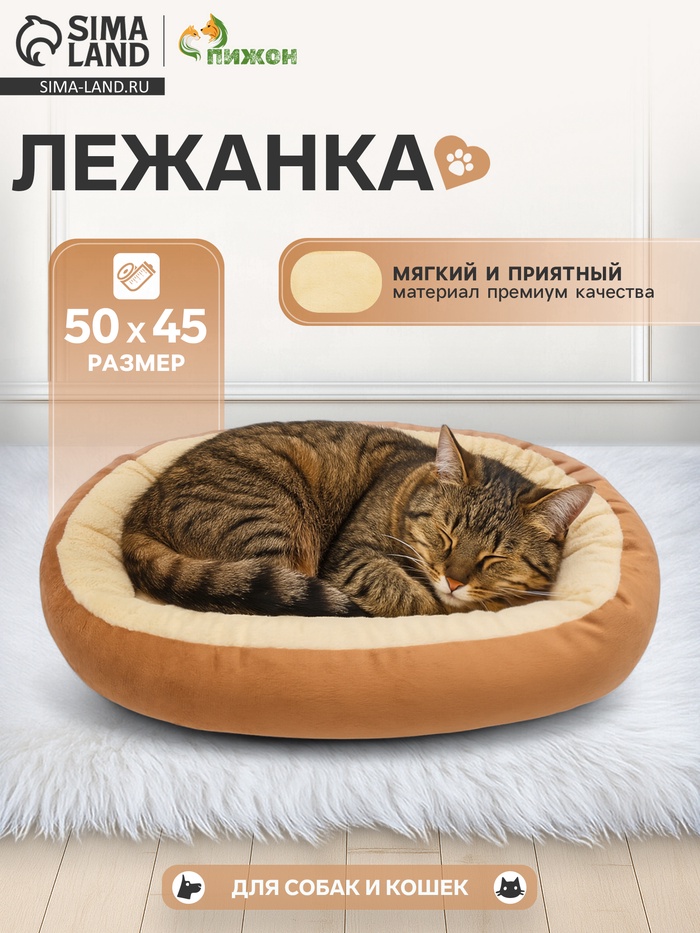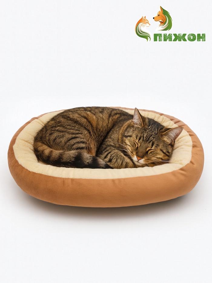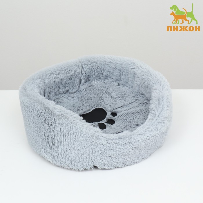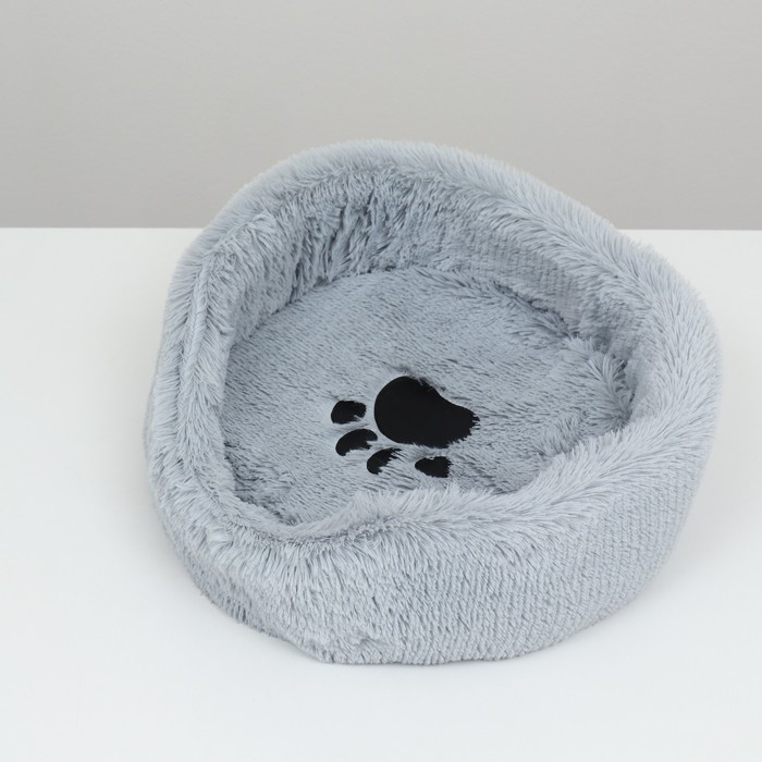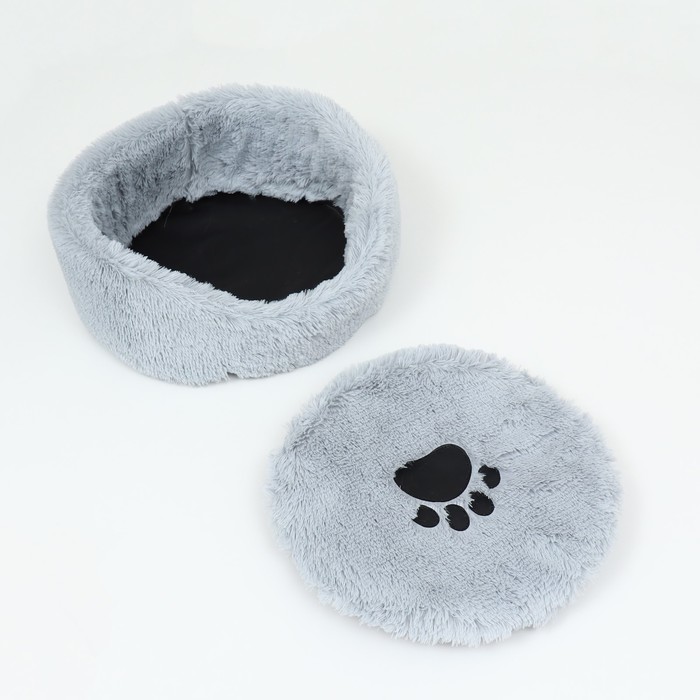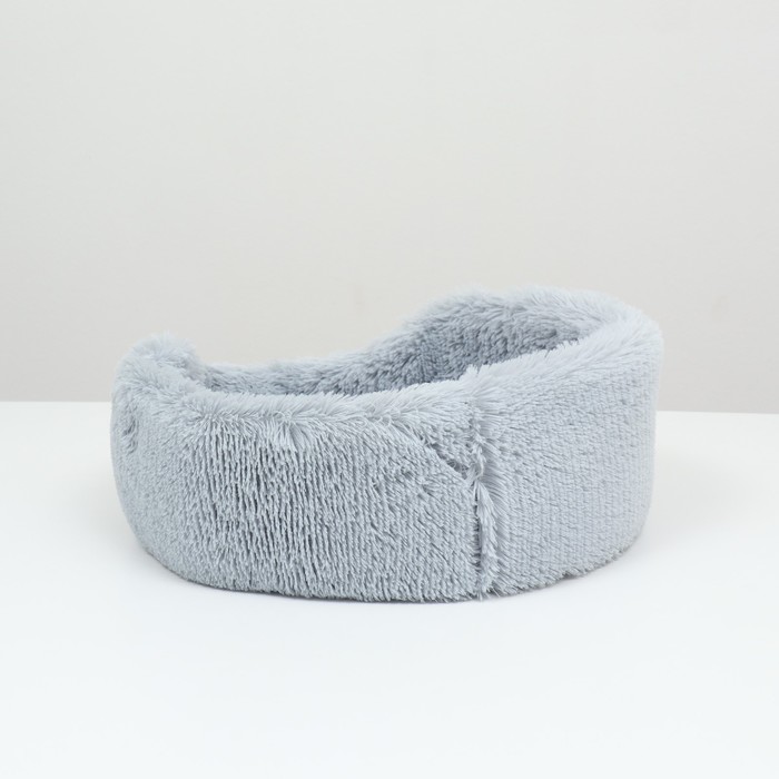 Лежанка для животных, с подушкой, мех, сатин, периотек, 40×40×16 см, серая 9 фото