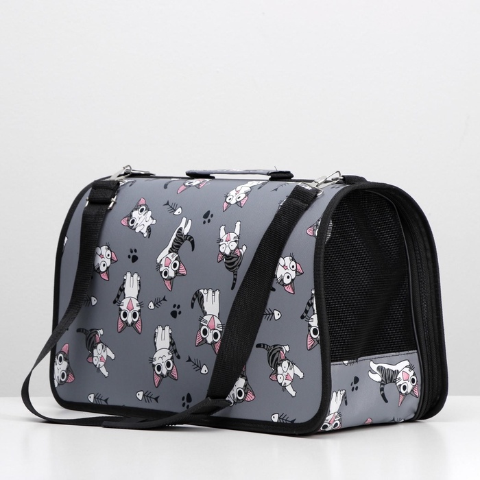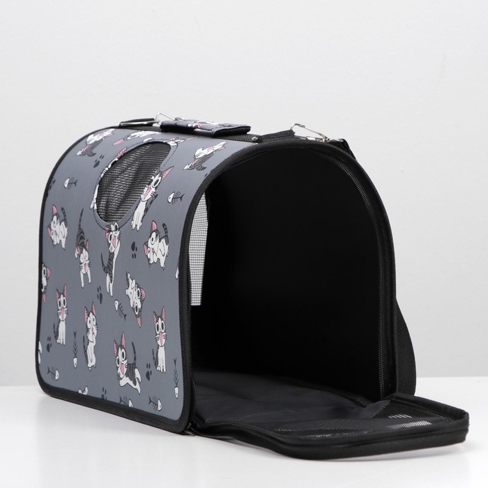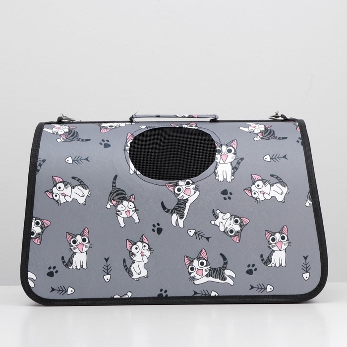 Сумка - переноска каркасная «Играющие котики», размер M, 40×21×27 см, серая 10 фото