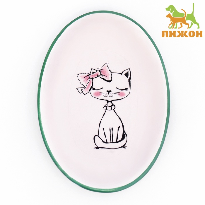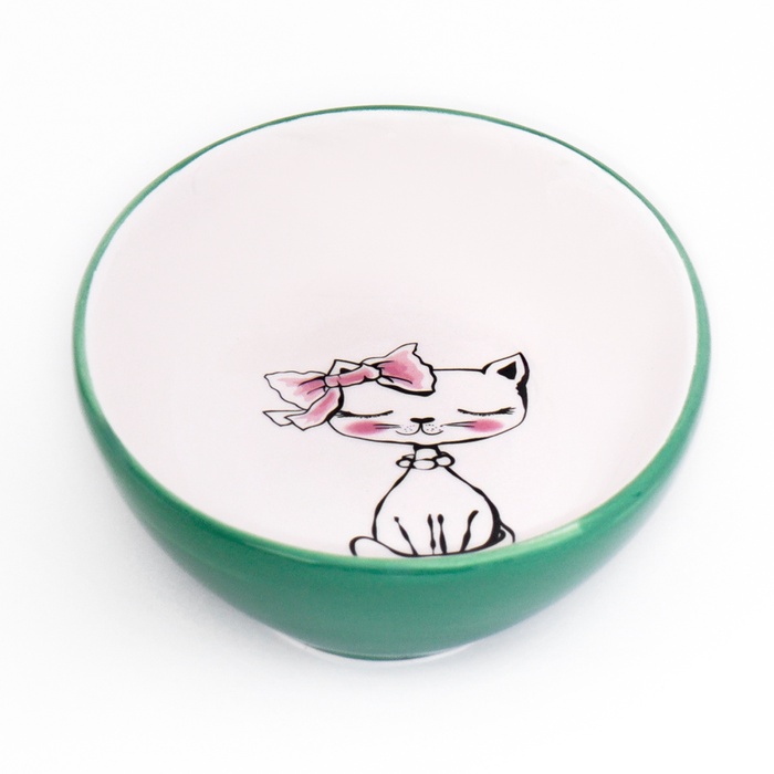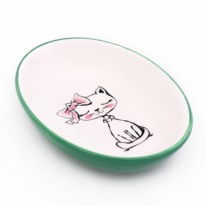 Блюдце керамическое «Милая киса» 200 мл 15.7×11.3×3.8 см, зеленая/белая 7 фото