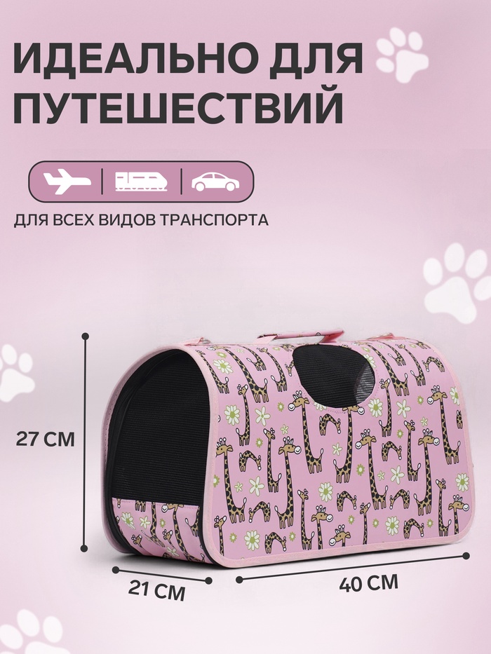 Сумка - переноска «Жирафы», размер M, 40×21×27 см, каркасная 10 фото