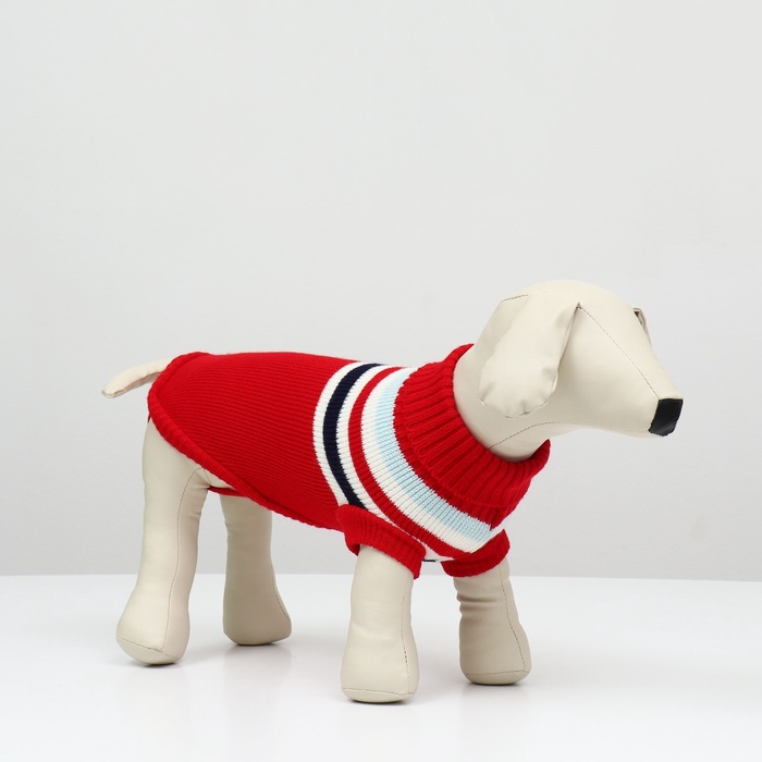 Свитер «Полоски», размер M, ДС 26, ОШ 26, ОГ 28-46 см, красный 7 фото