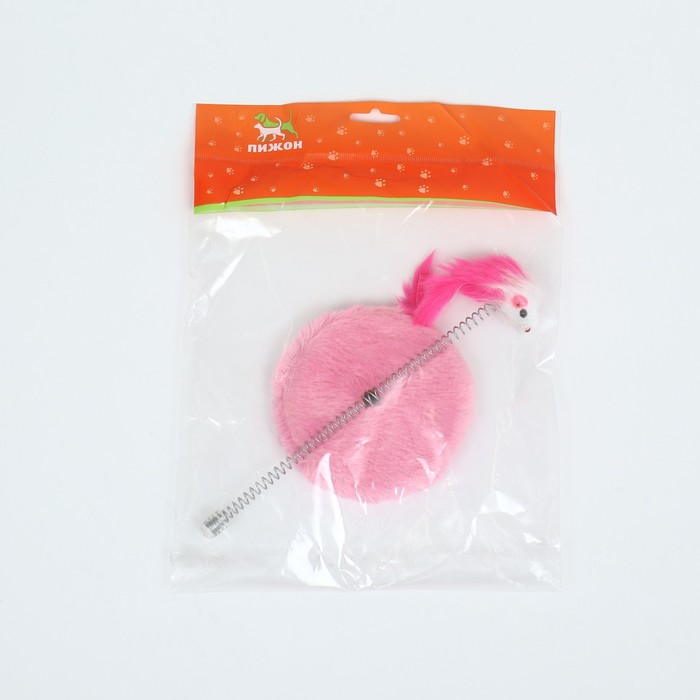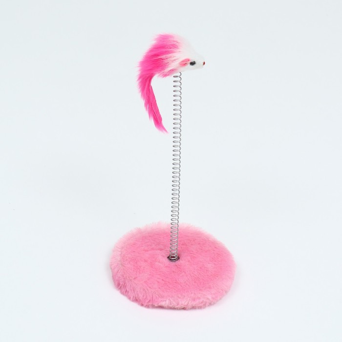 Дразнилка для кошек, 10.5×23 см, на пружине с мышью 5 см, розовая 4 фото