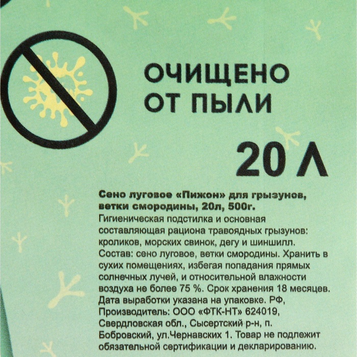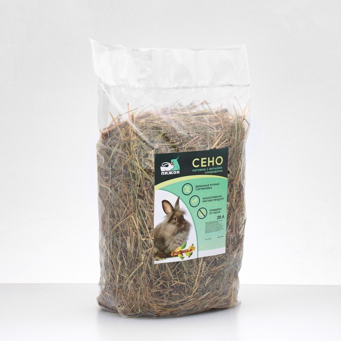 Сено луговое с веточками смородины «Пижон» для грызунов, 20 л, 500 г 8 фото