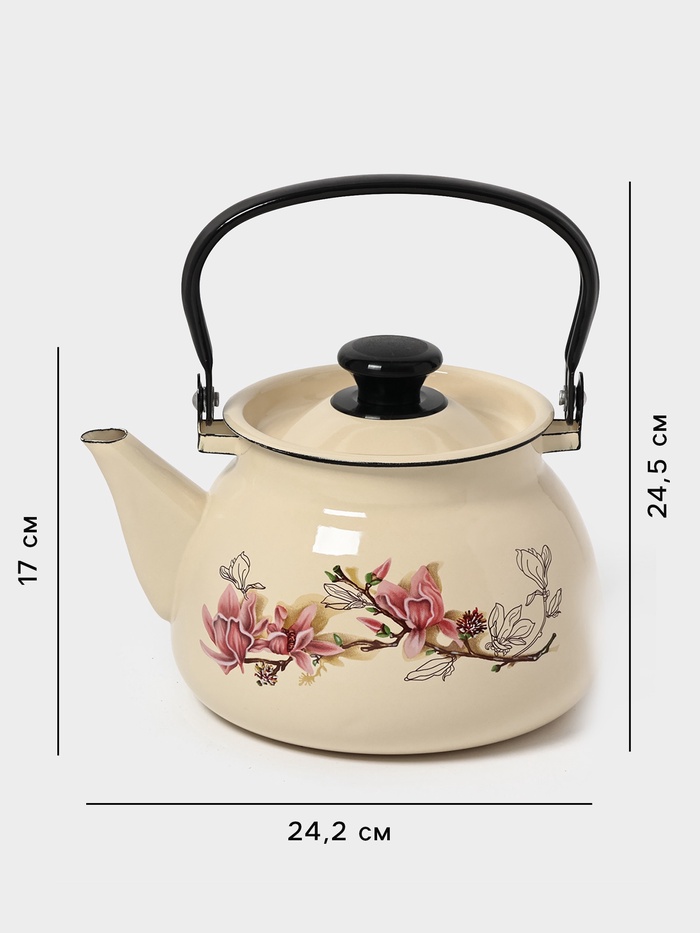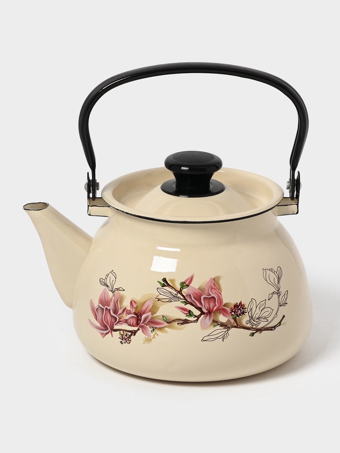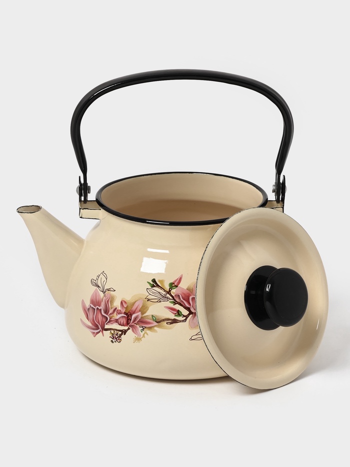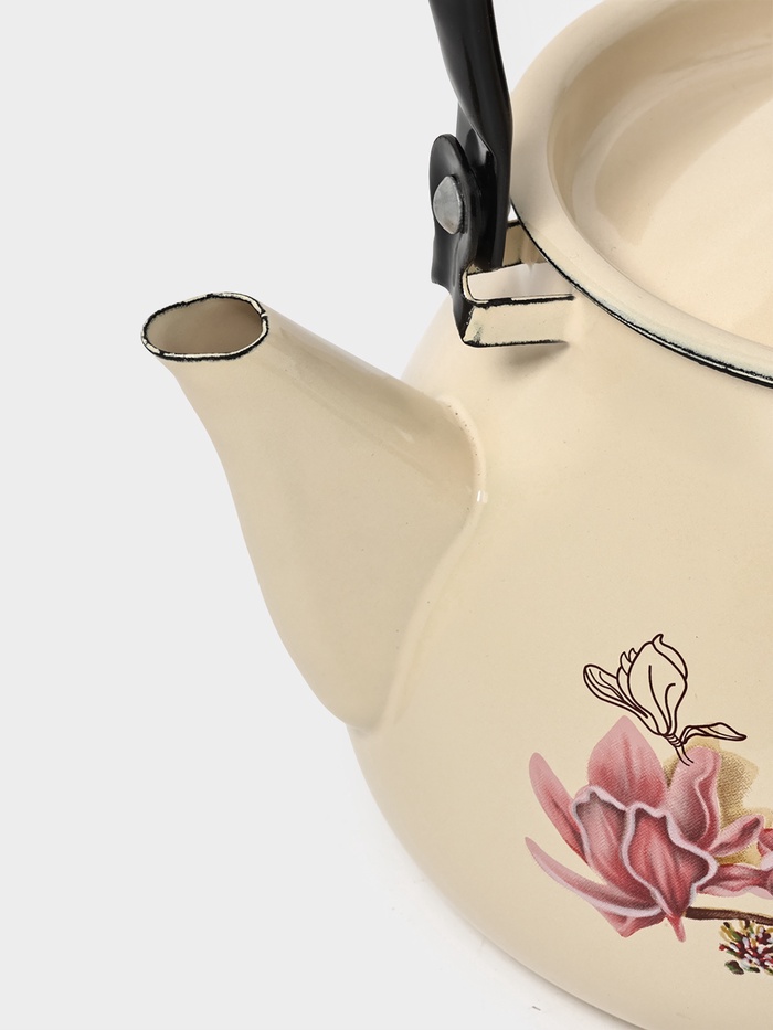 Чайник эмалированный «Магнолия», 3 л, металлическая ручка, слоновой кости 9 фото