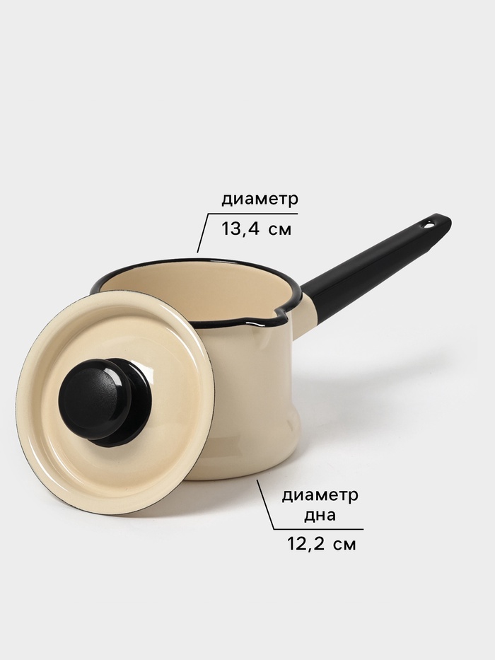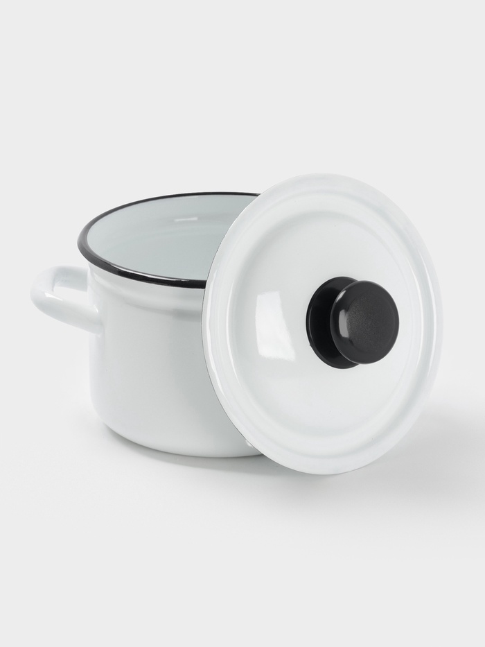 Кастрюля эмалированная, 2 л, d=17 см, с крышкой, цилиндрическая, белая 6 фото