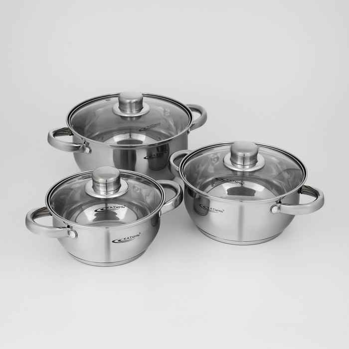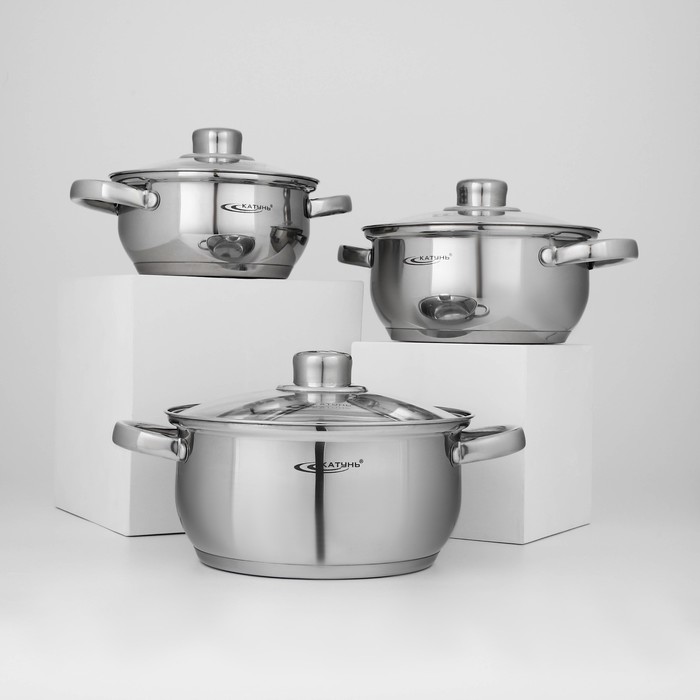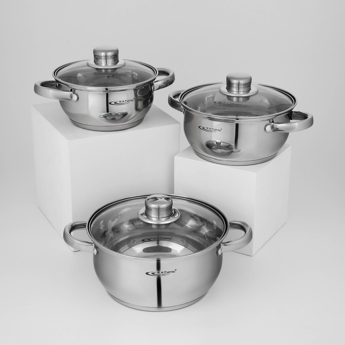 Набор кастрюль «Гретта», 3 предмета: 1.6 л, 2.2 л, 3.2 л, капсульное дно, индукция, нержавеющая сталь, AISI - 201 10 фото
