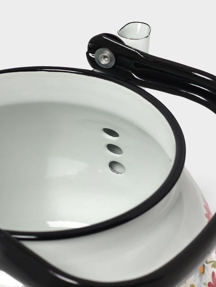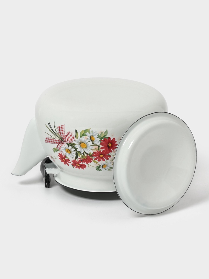 Чайник эмалированный «Астры», 3 л, металлическая ручка, белый 9 фото
