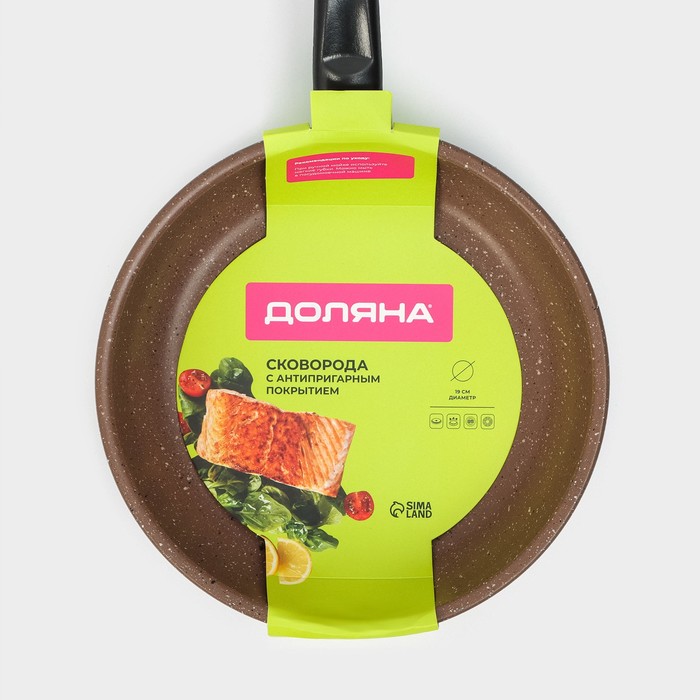 Сковорода Доляна Rock, d=19 см, пластиковая ручка, антипригарное покрытие, углеродистая сталь, коричневая 8 фото