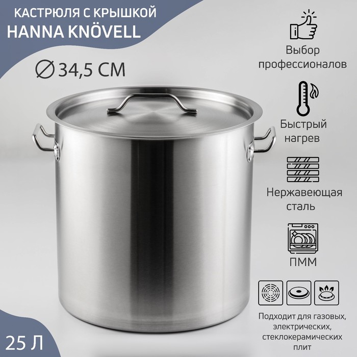 Кастрюля Hanna Knövell с крышкой, 25 л, d=36 см, h=24 см, толщина стенки 0.8 мм, нержавеющая сталь 9 фото