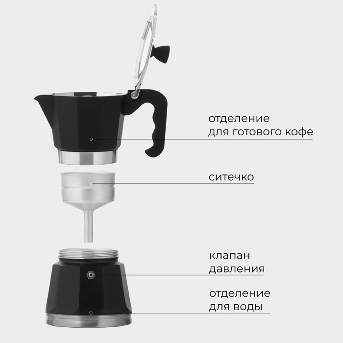 Кофеварка гейзерная с капучинатором Magistro Blackout, подарочный набор 2 предмета, 300 мл, чёрная 10 фото