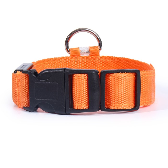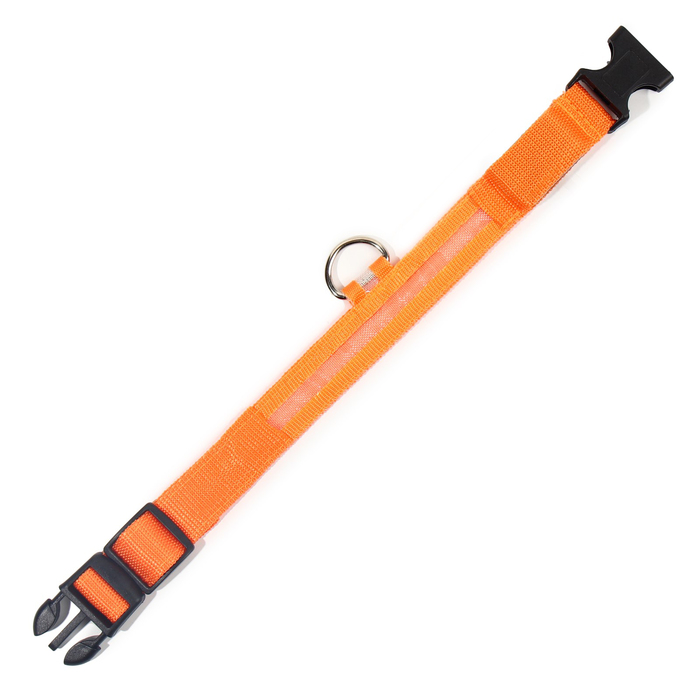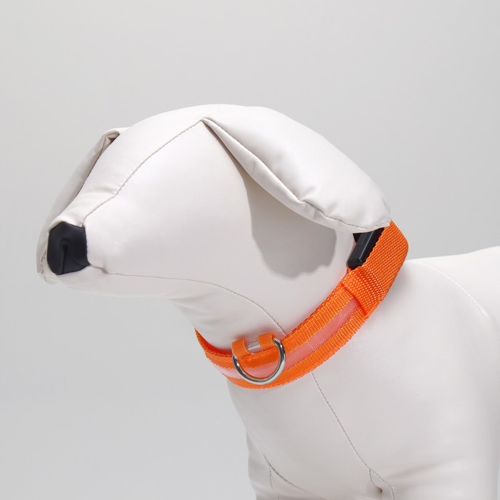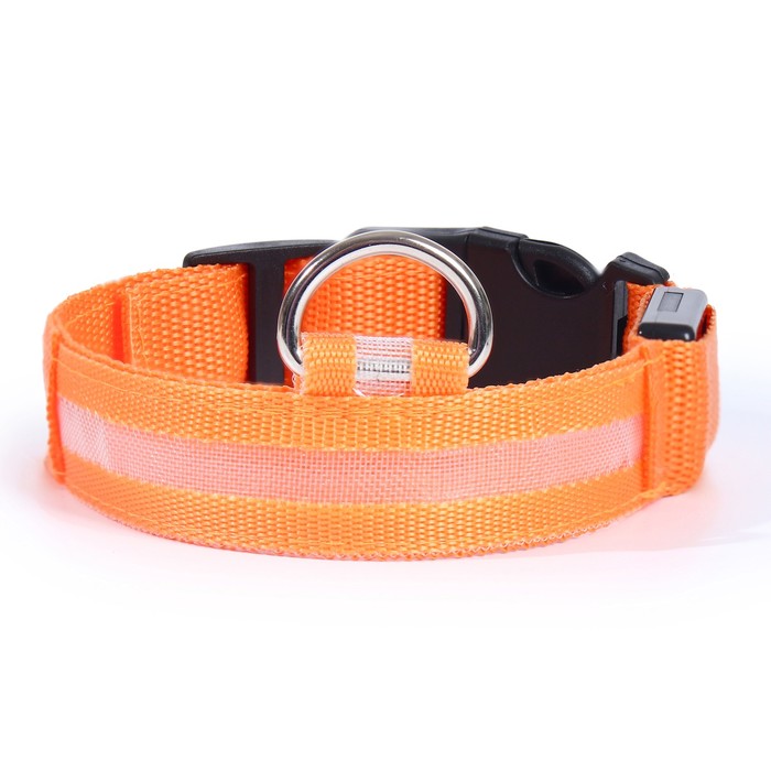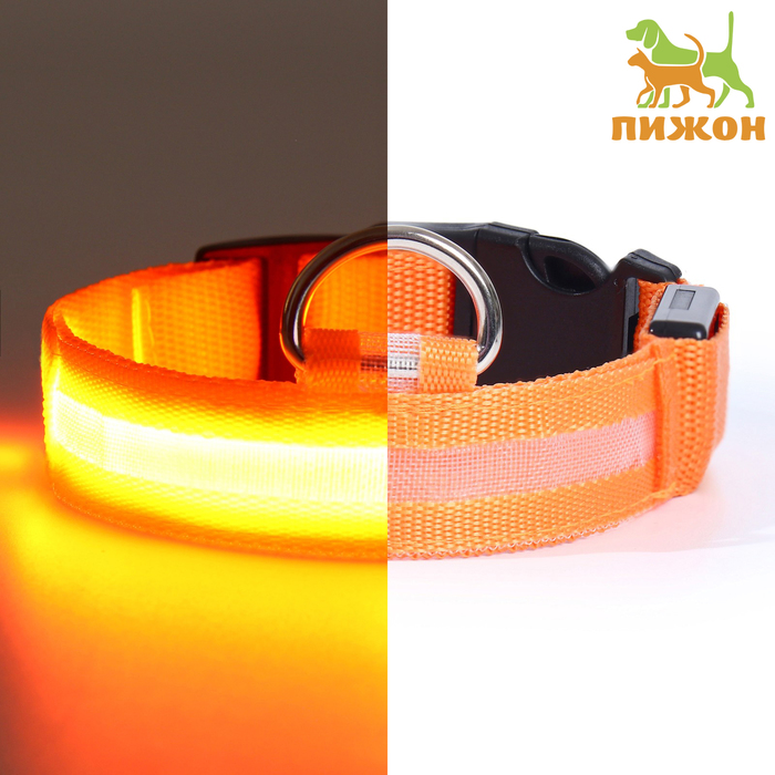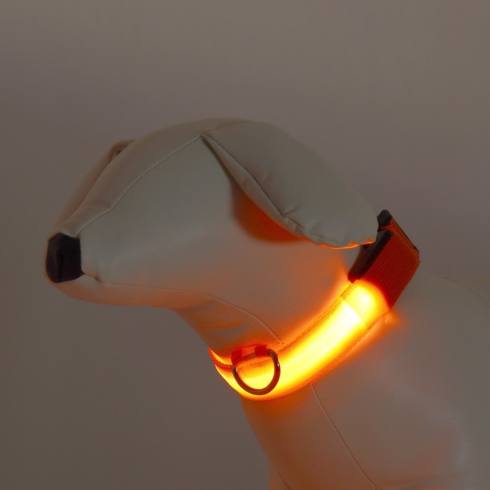 Ошейник с подсветкой размер S, ОШ 35-43×2.5 см, 3 режима свечения оранжевый 10 фото