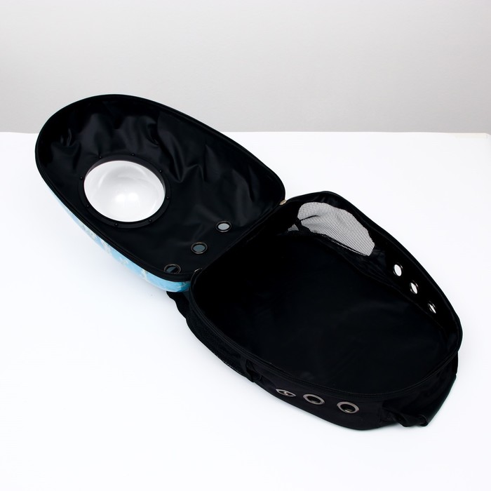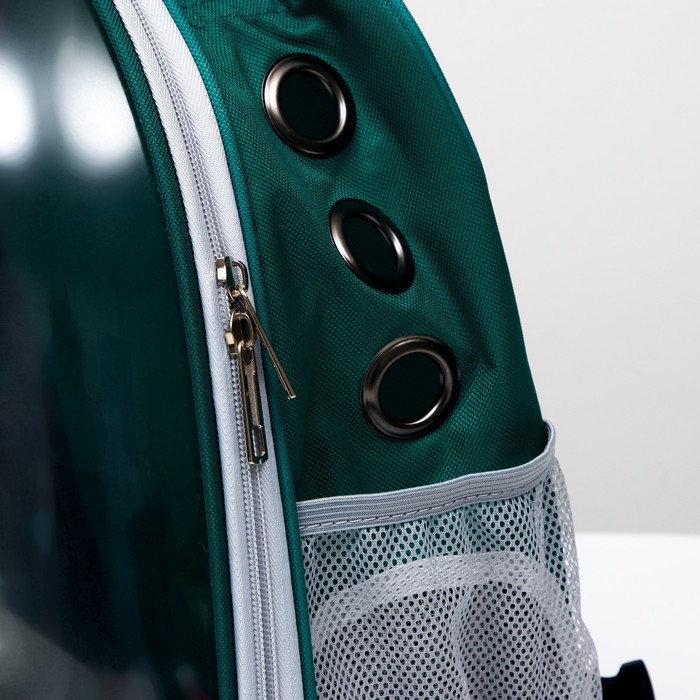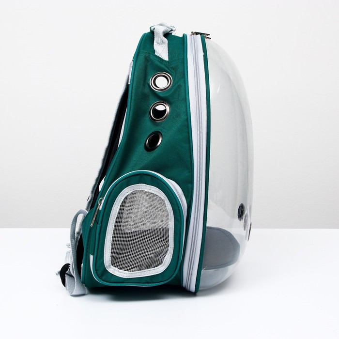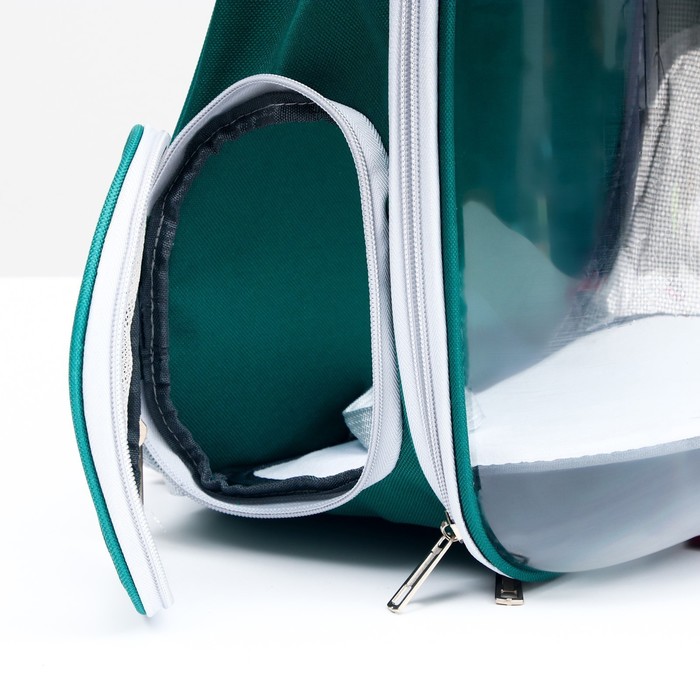 Рюкзак для переноски животных, 31×28×42 см, прозрачный, сине-зелёный 10 фото