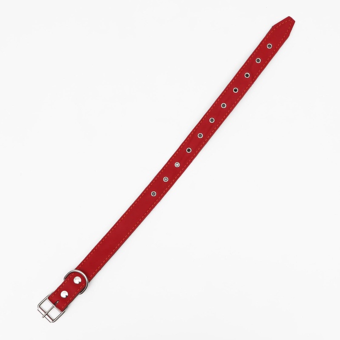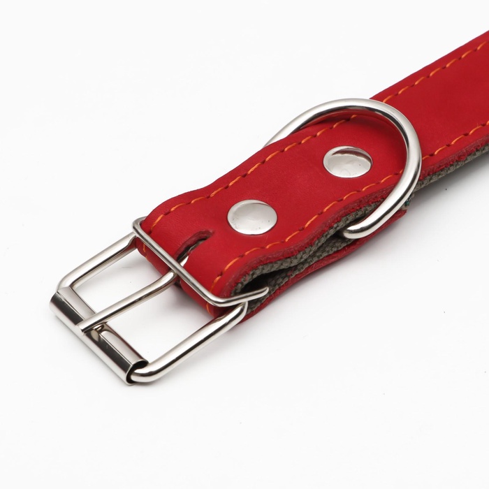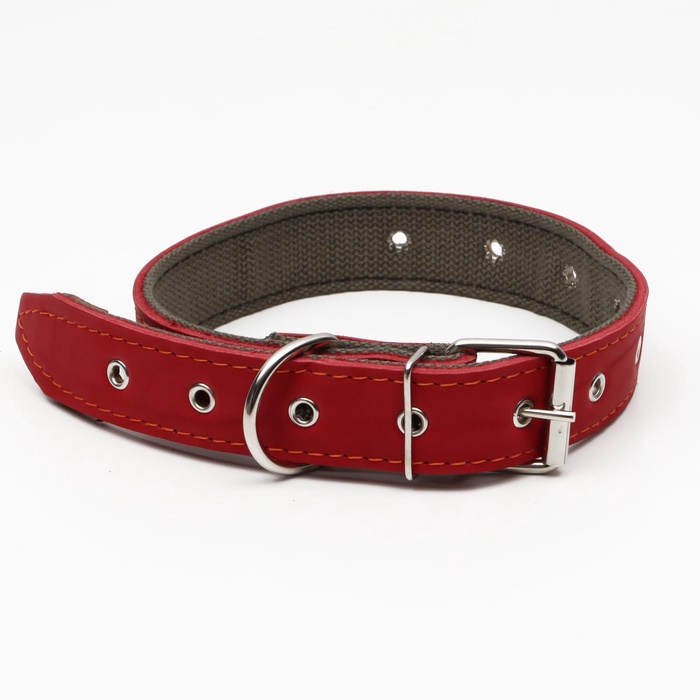 Ошейник комбинированный кожа/брезент, безразмерный, 70 х 3,5 см, ОШ 25-60 см, красный 5 фото