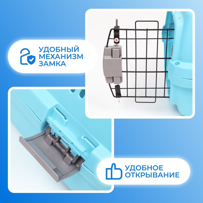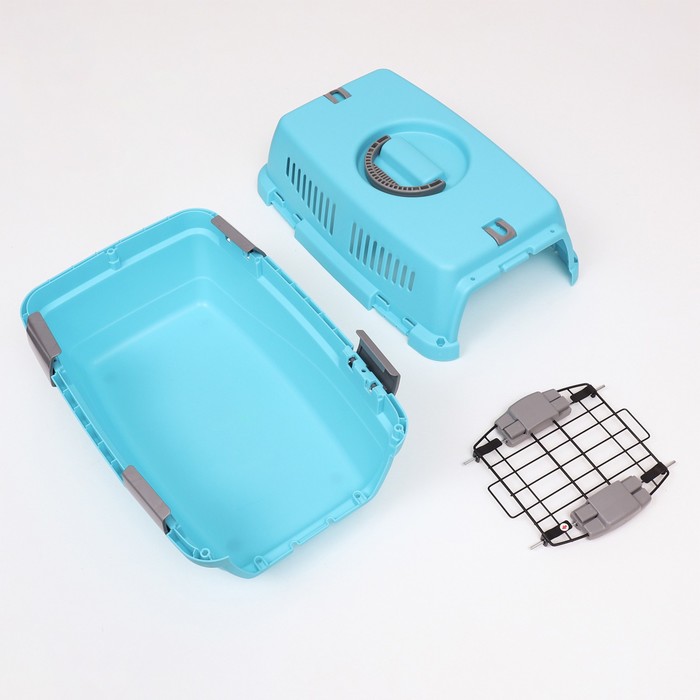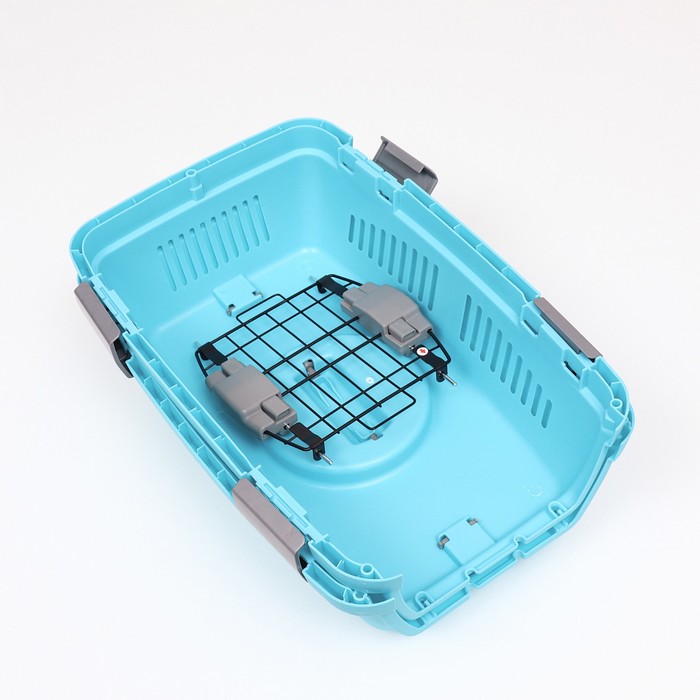 Переноска для животных «Неон», 48×32×29.5 см, вес до 12 кг, пластик, голубая 7 фото