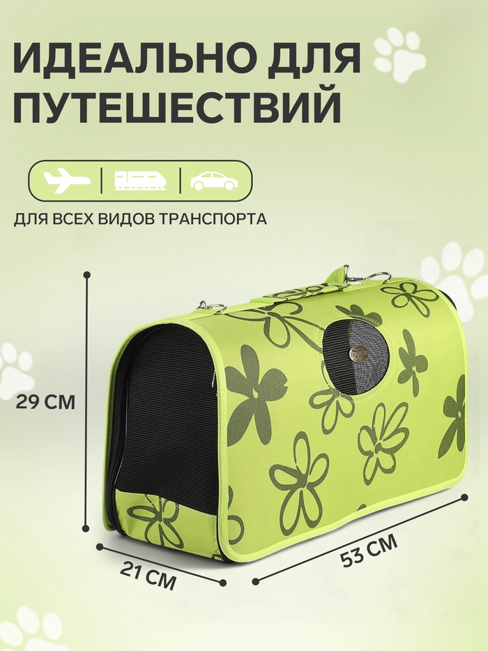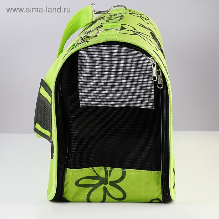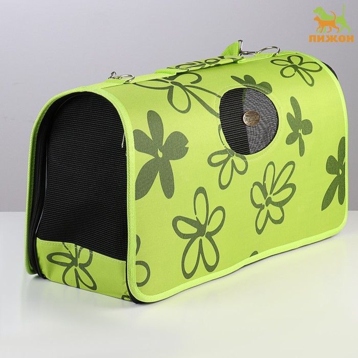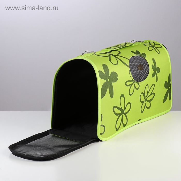 Сумка - переноска «Цветы», размер L, 53×21×29 см, каркасная, зелёная 10 фото