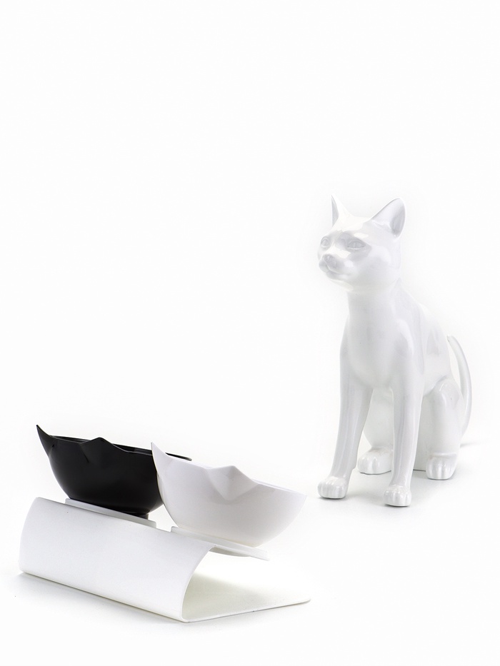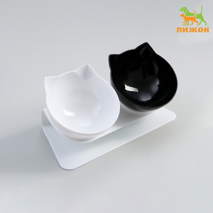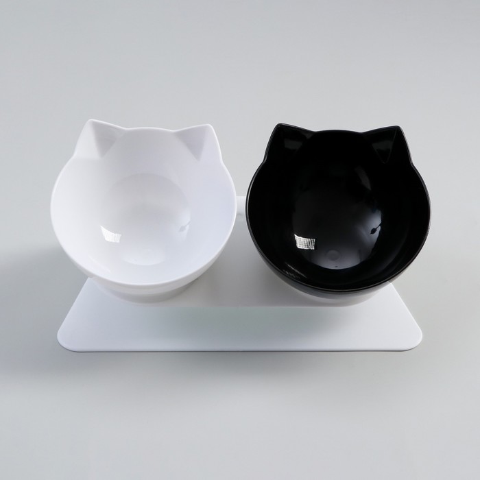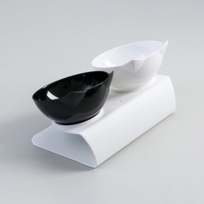 Миски, 27.5×14×15 см, 2 шт., на белой подставке, пластик, чёрная, белая 6 фото