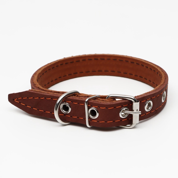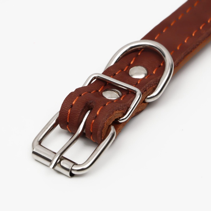 Ошейник кожаный двухслойный, 46×2 см, ОШ 25-35 см, коричневый 5 фото