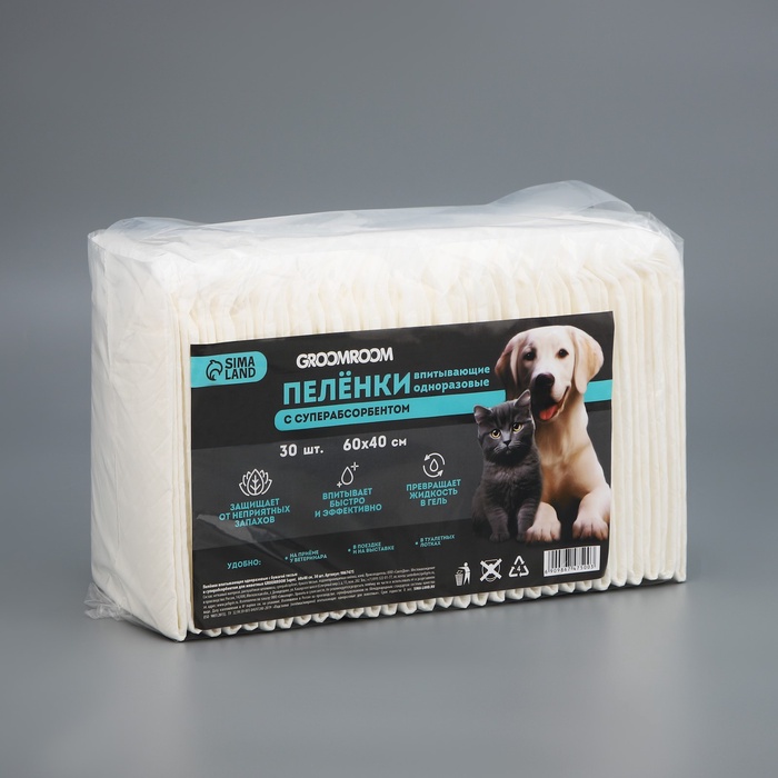 Пелёнки одноразовые с суперабсорбентом для животных, 60×40 см, 30 шт. 9 фото